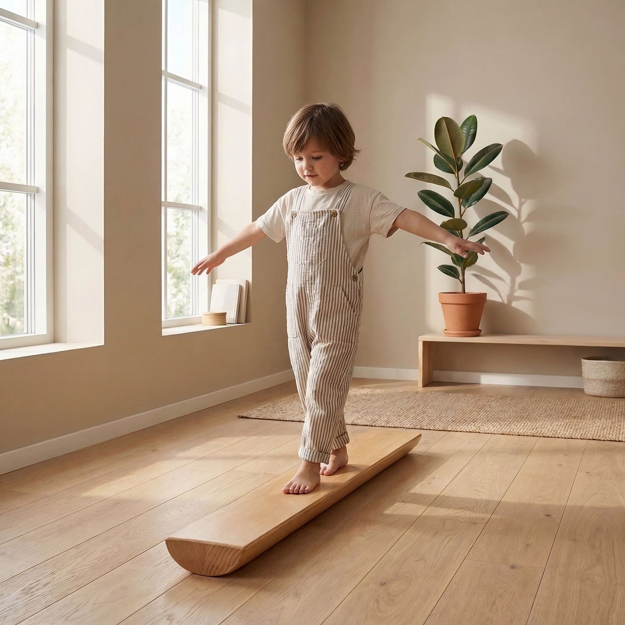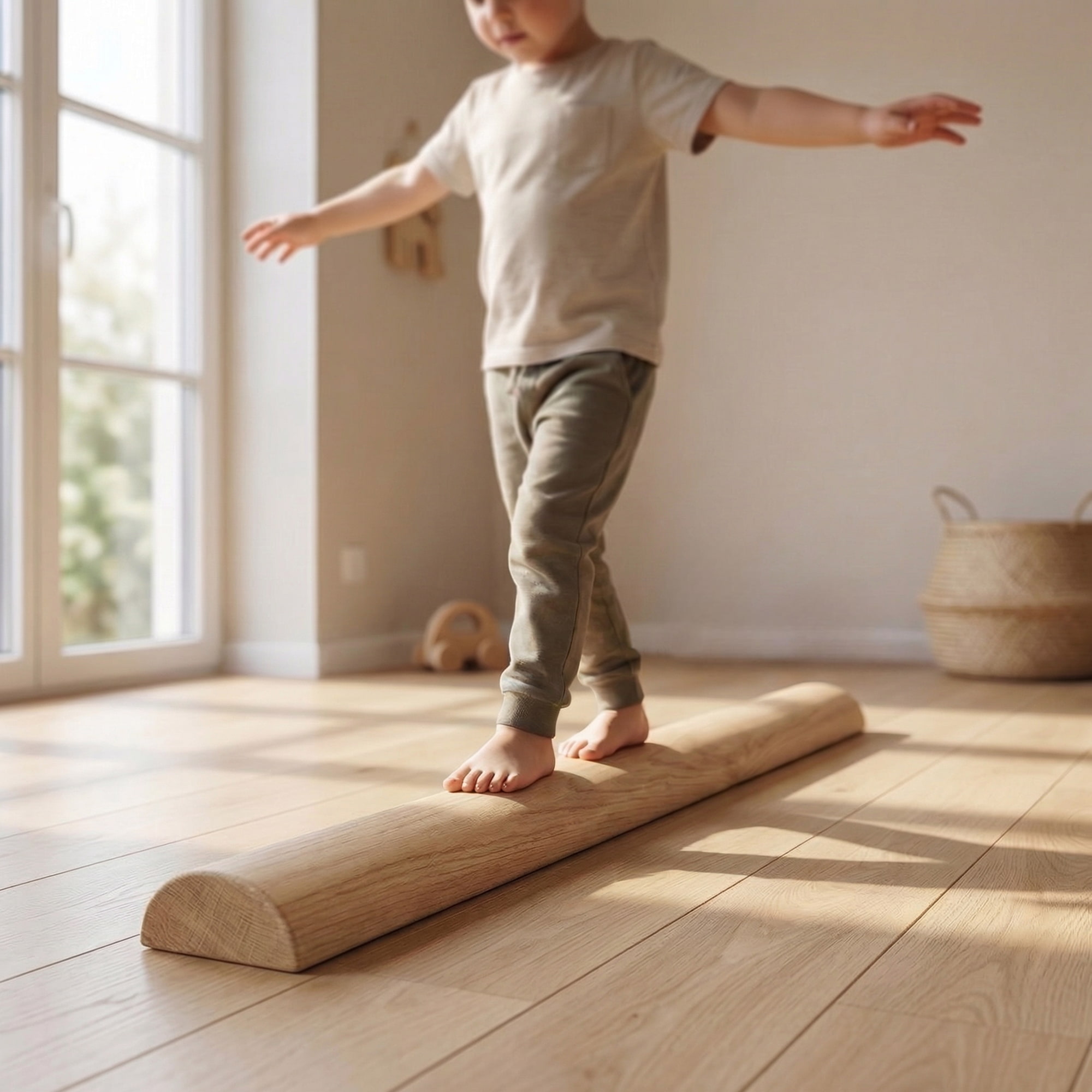 The wooden balance beam is a simple yet highly functional tool for exercise and active play. It helps children develop balance, coordination, and confidence in their movements. Made from natural wood, it is durable and visually appealing, making it a great addition to a children’s room, playroom, or gym corner.