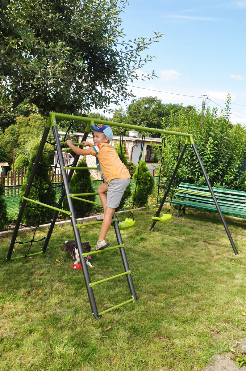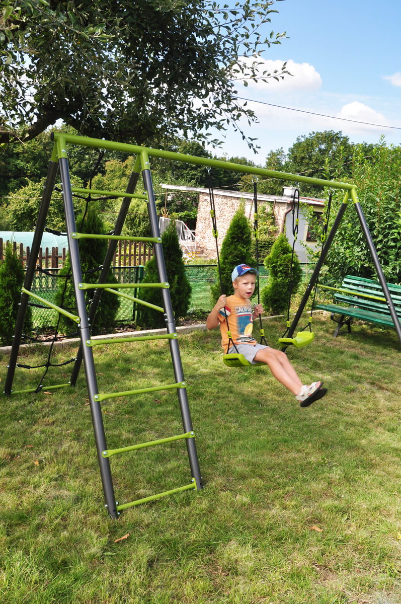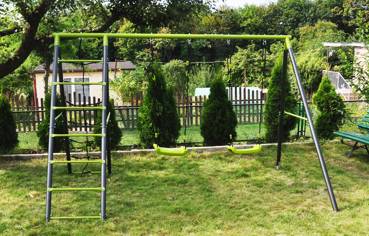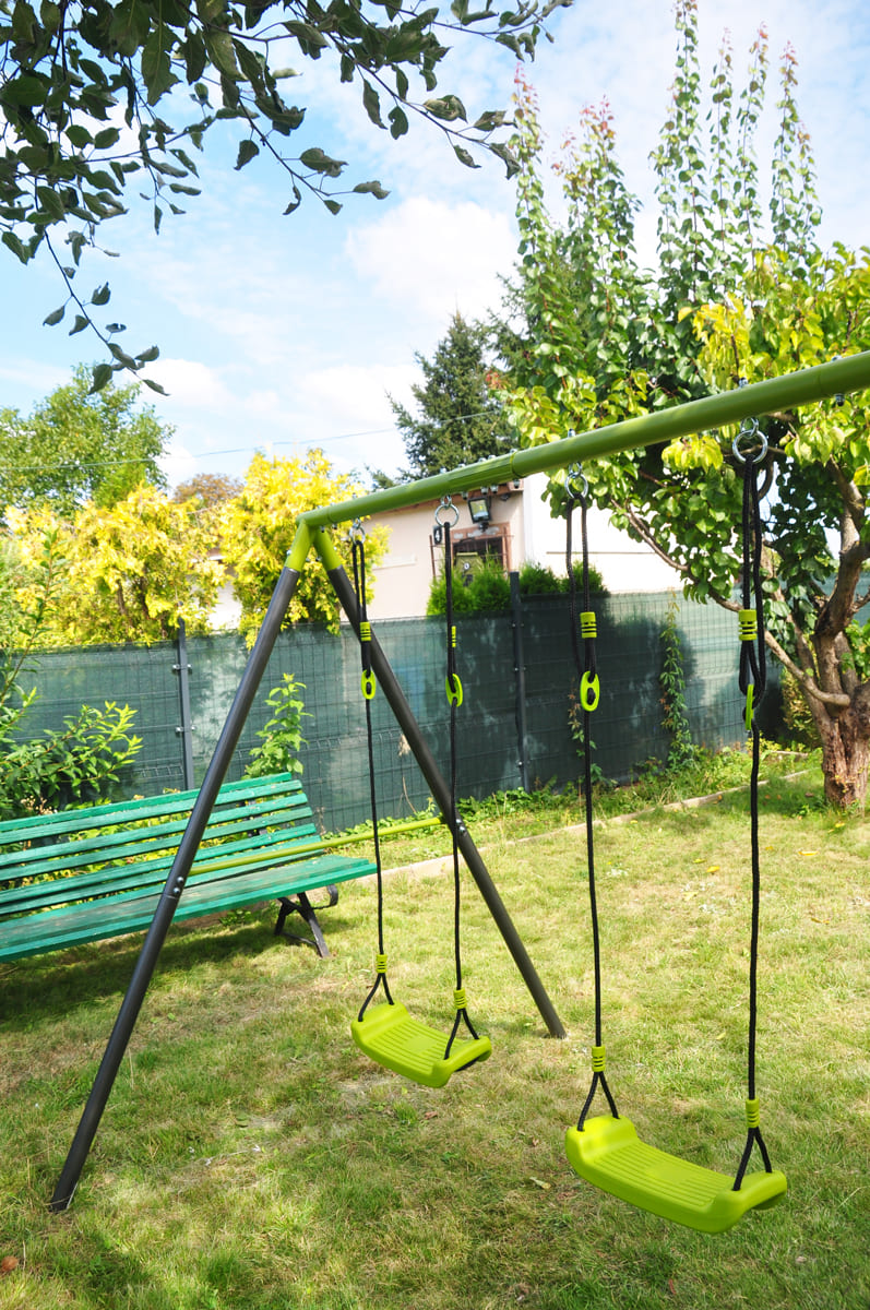 The children’s garden swing often completes the happiness of kids in the garden. The double swing, is manufactured on a stable metal base. This ensures the safety and long life of the set.