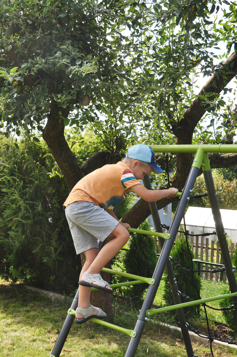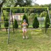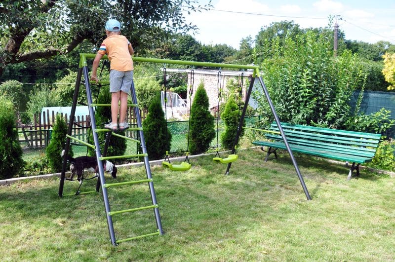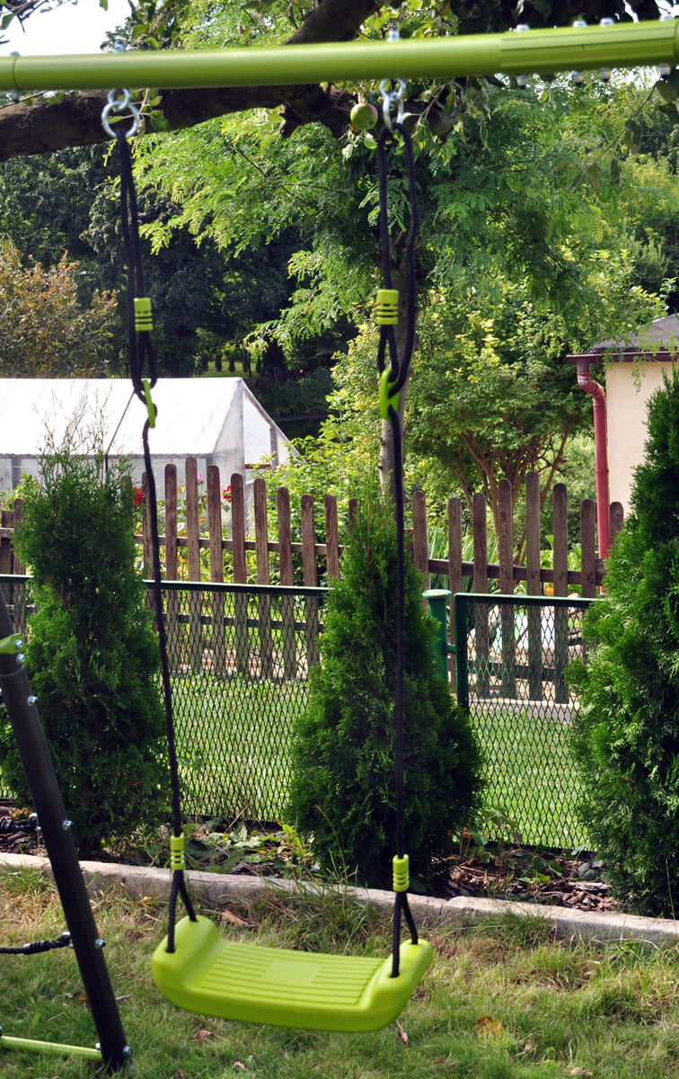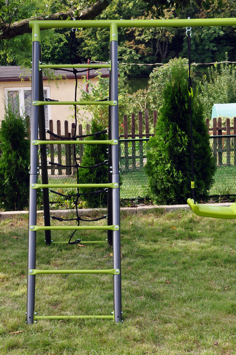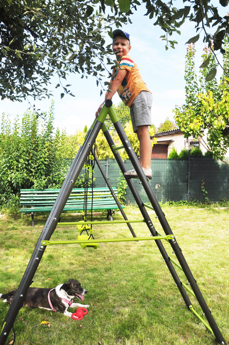 The children’s garden swing often completes the happiness of kids in the garden. The double swing, is manufactured on a stable metal base. This ensures the safety and long life of the set.