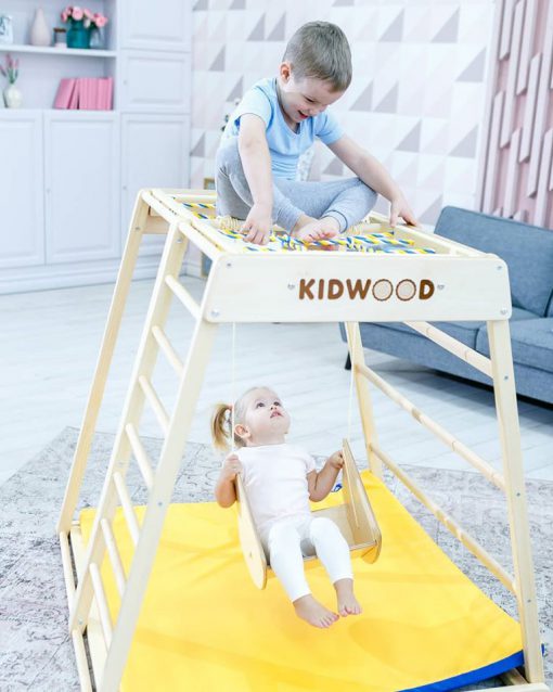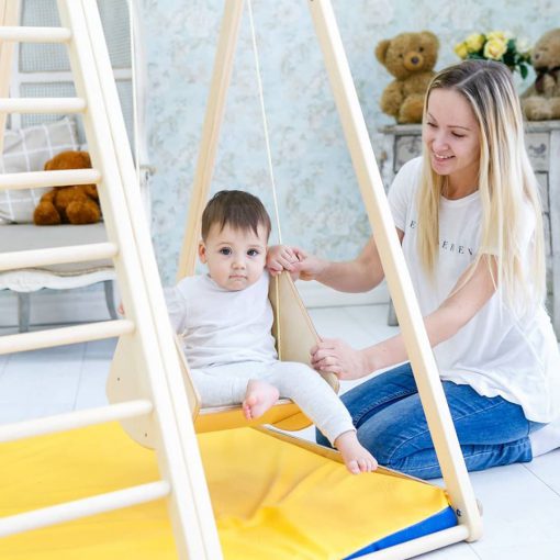 Swing table – these are original multifunction accessories. It can be used as a soft ride-on rocker or a baby chair. And if you move the ropes through special holes, you’ll get a suspended swing to your home playground. A swing table is a perfect solution for a small space, because it combines several functions: a simple swing, a toddler’s chair, a soft ride-on rocker.