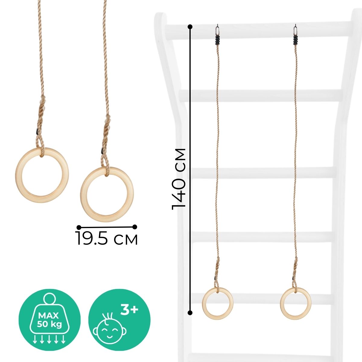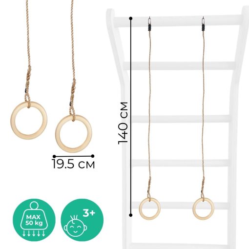Playing on gymnastic rings provides a full-body workout. Regular use improves a child’s physical fitness, coordination, and accelerates overall development.