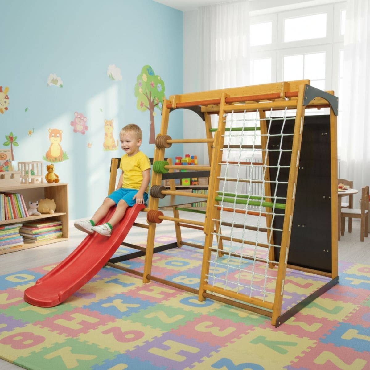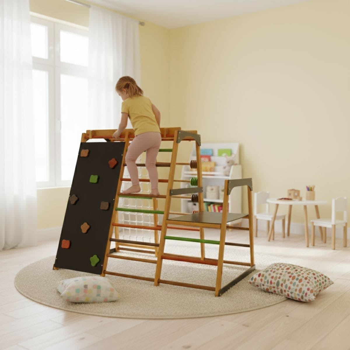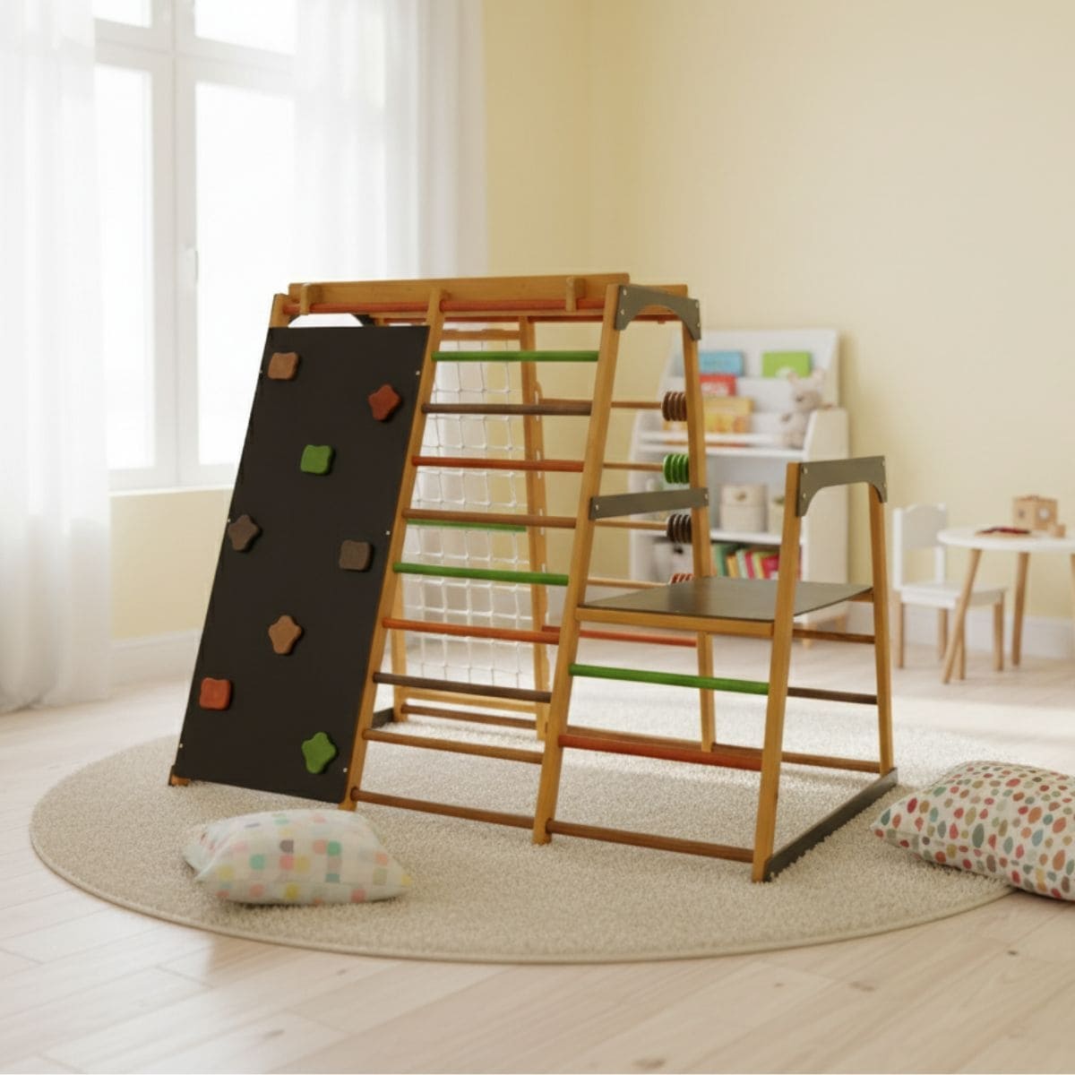At Monkey-gym, we treasure the early years — the moments when tiny hands grasp a rung for the first time, when cautious steps become confident climbs, and when play gently turns into growth. Our Bambino set was created with this tender stage in mind. It’s a warm, safe, and beautifully simple children’s wooden climbing frame designed to support early development while bringing joy into everyday family life.