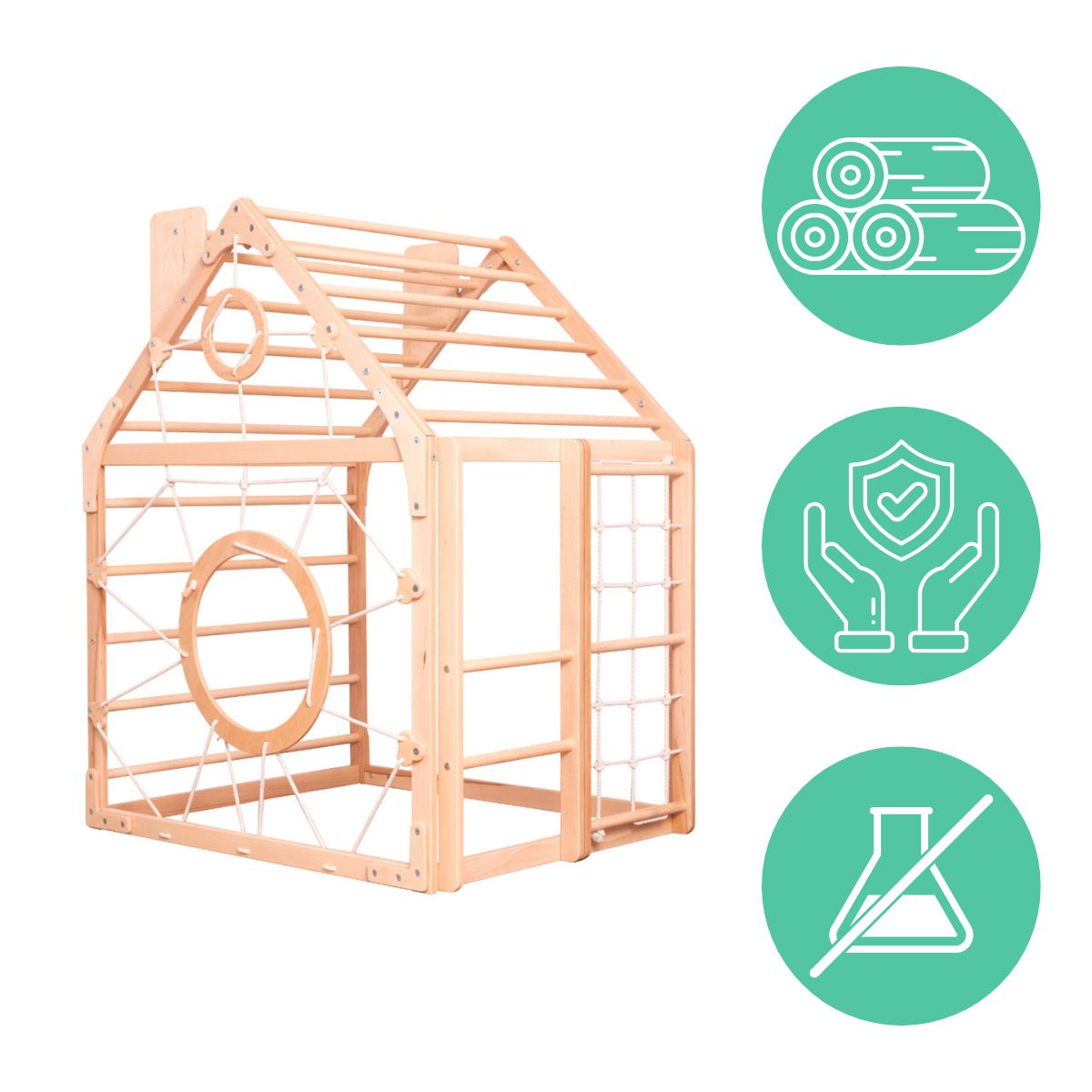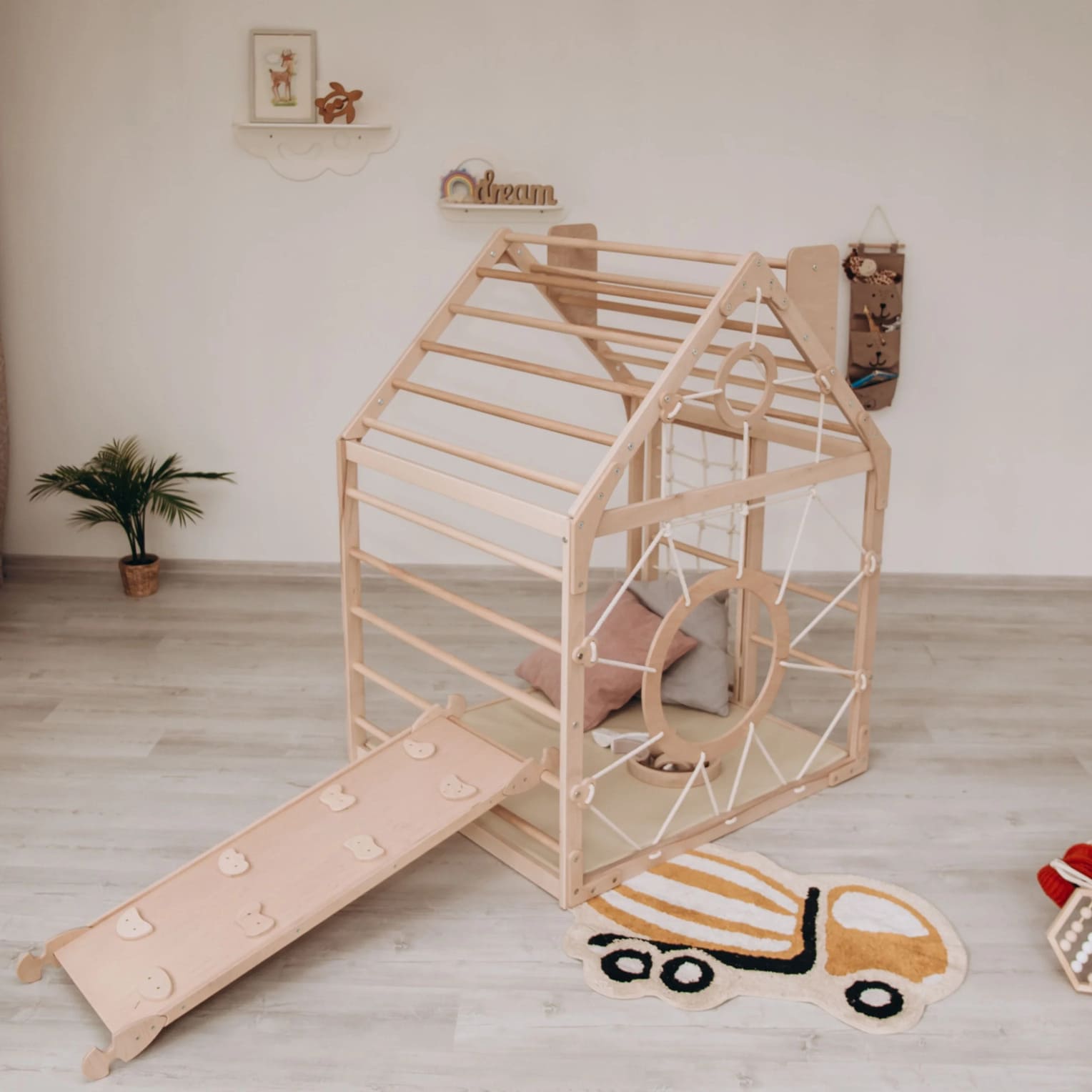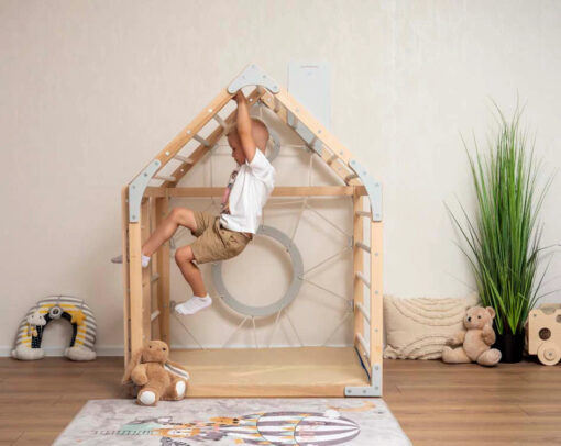 The House is part of our family of wooden climbing frames indoor, but it holds a special place in our hearts. It invites not just climbing, but also imagination, connection, and comfort. It’s as much about emotional safety as it is about physical development.