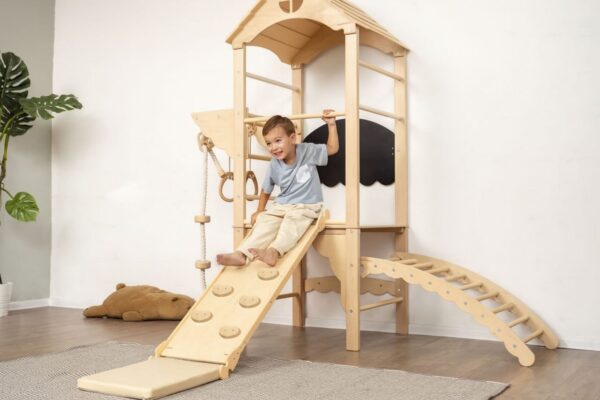 Whether your child wants to climb, swing, slide, or hang, the Tower encourages active play and supports muscle development, balance, and motor skills. It’s perfect for rainy days, energetic mornings, or quiet afternoon adventures.