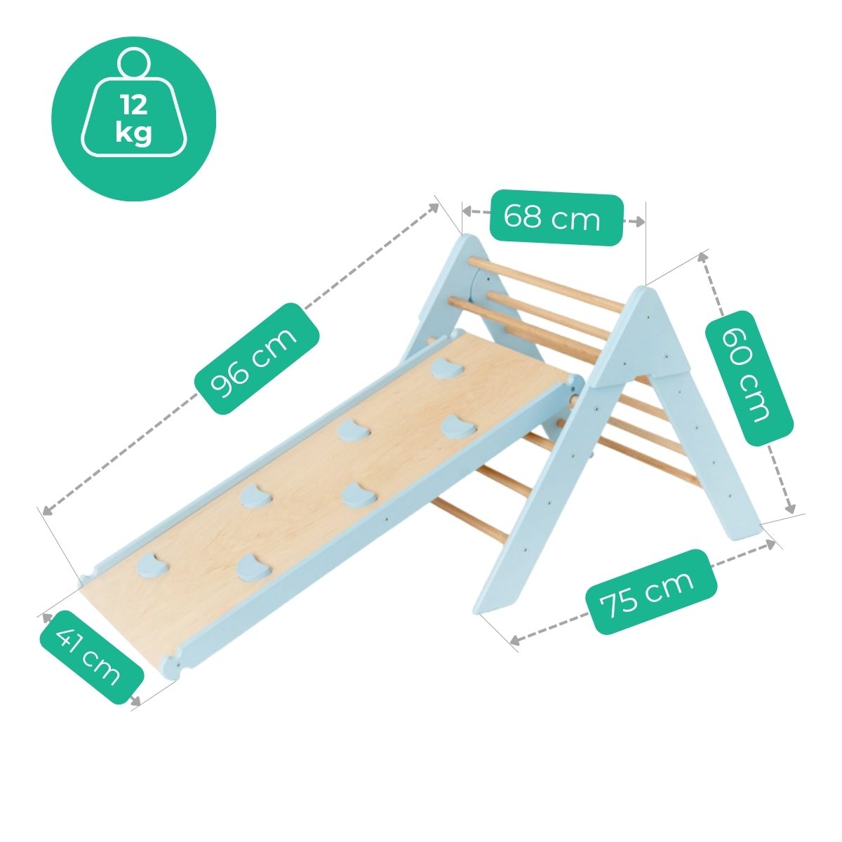 - Dimensions: 75 x 68 x 60 cm (climbing triangle), 96 x 41 cm (slide)