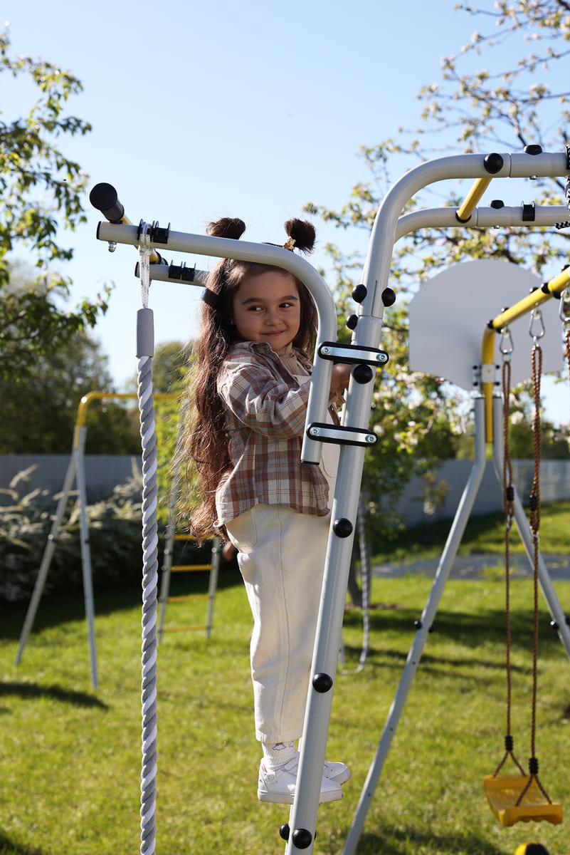 As a metal climbing frame, Acrobat is built to be stable and reliable. Parents can watch with peace of mind, knowing every bar, rung, and rope is secure.