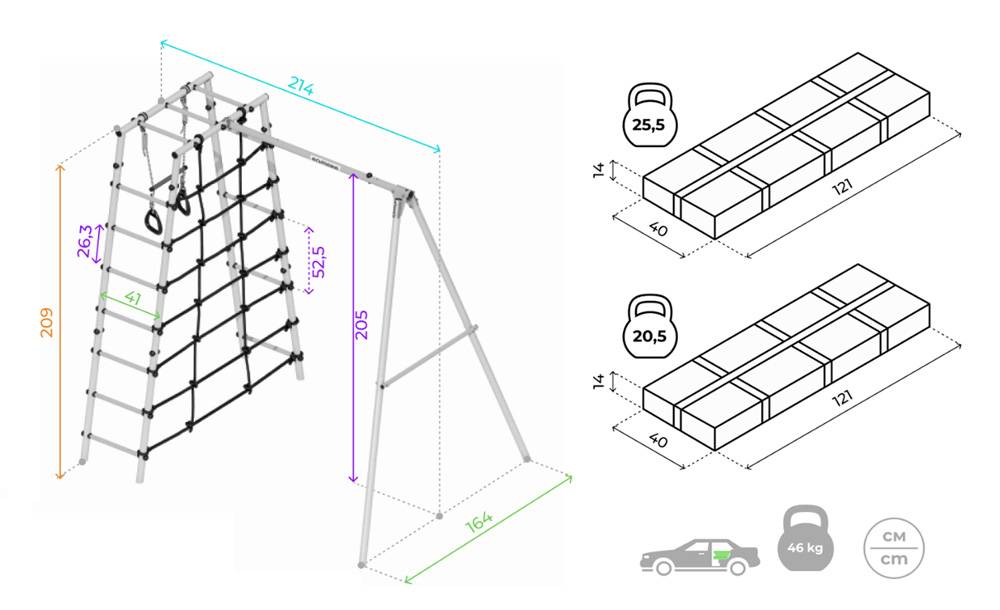 - Load capacity: 100 kg (metal structure), 50 kg (accessories)