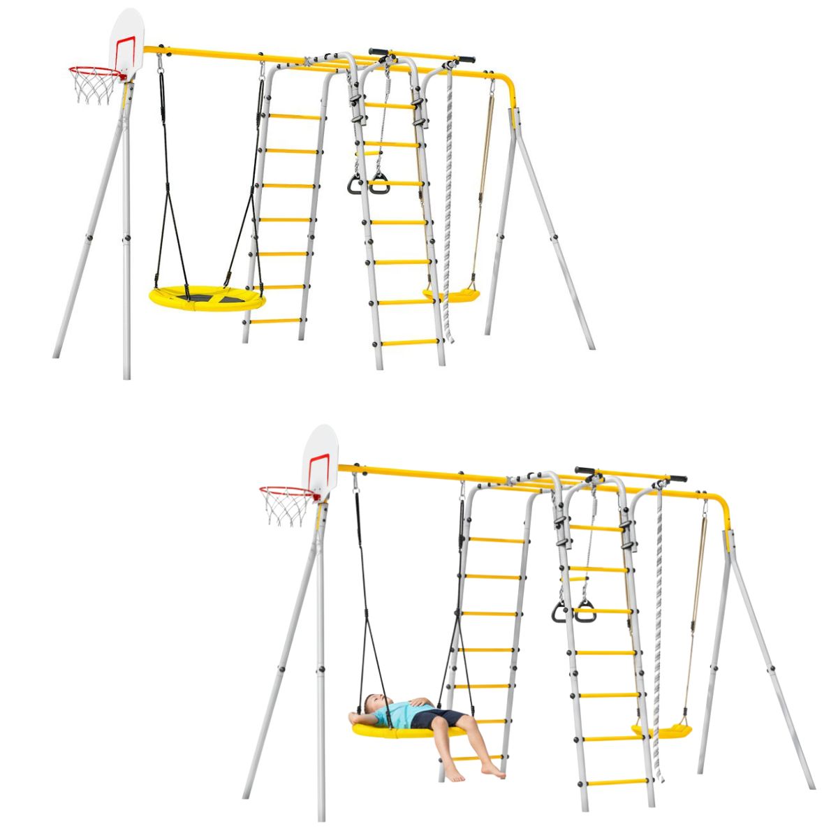 The Happy Meadow Plus is designed as a mini world of fun, movement, and discovery. Its weather-resistant metal climbing frame structure provides stability for active play, while colorful, child-friendly elements spark imagination and confidence.