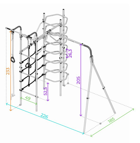 Maximum load: 100 kg (playground), 50 kg (hanging accessories)