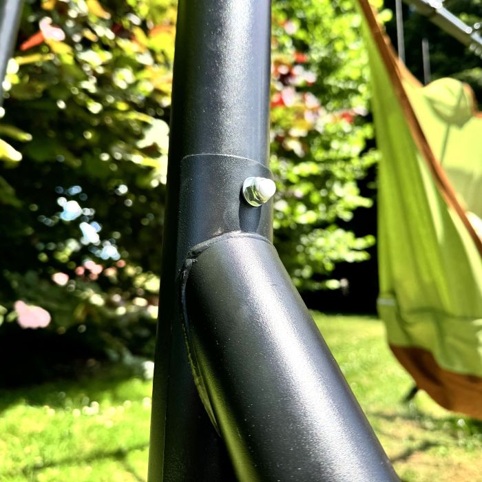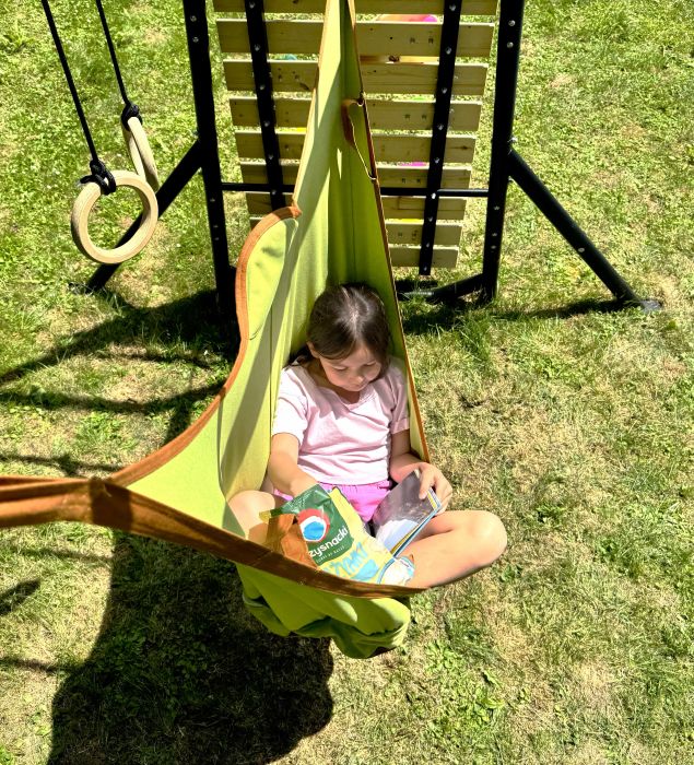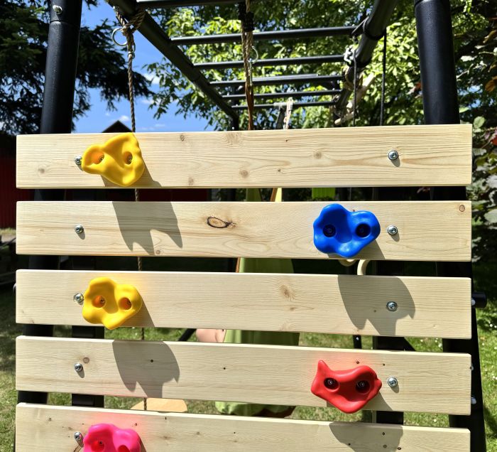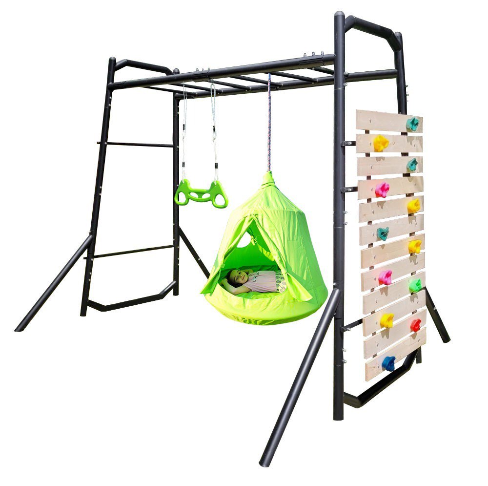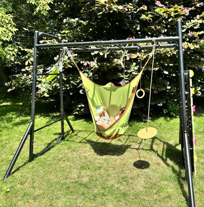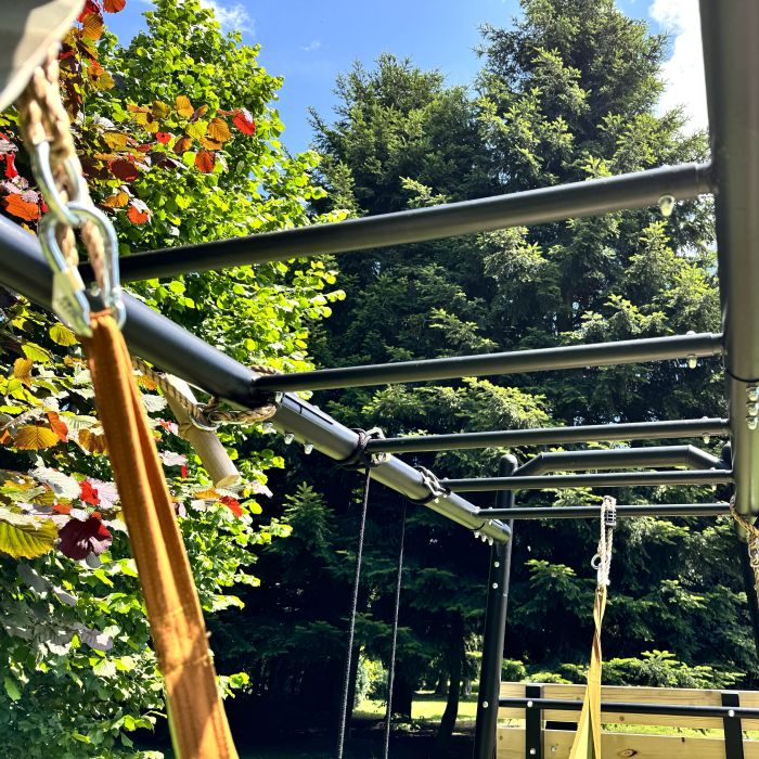 Maximum load capacity of the accessories: 70 kg (trapeze, cocoon chair, swing seat), 100 kg (climbing wall), 150 kg (nest swing with tent)