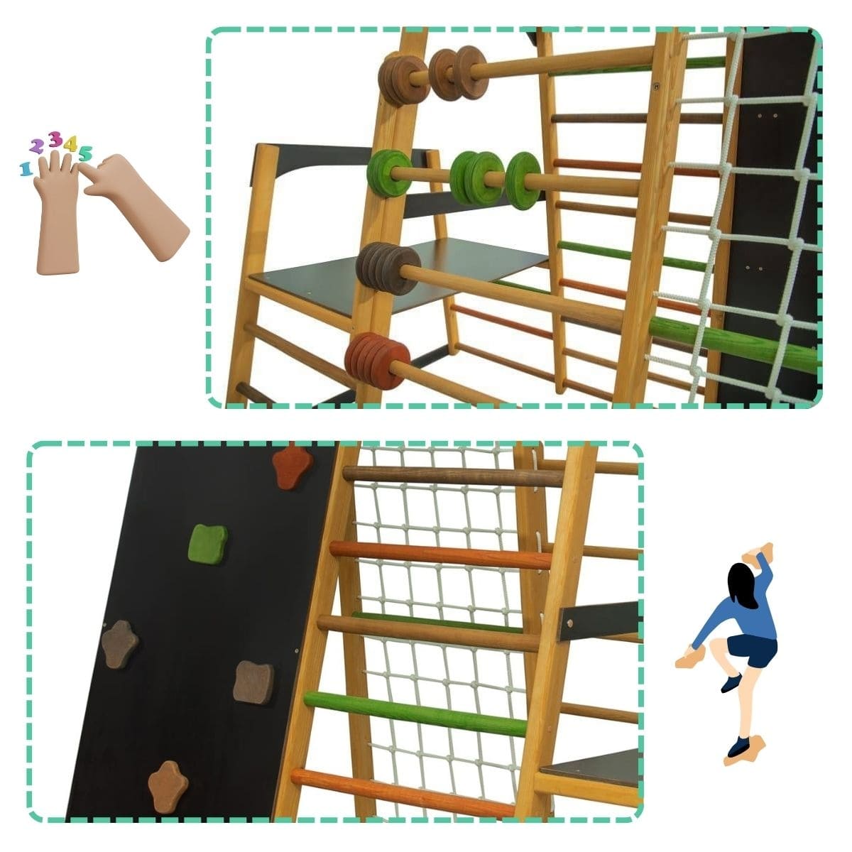 At Monkey-gym, we treasure the early years — the moments when tiny hands grasp a rung for the first time, when cautious steps become confident climbs, and when play gently turns into growth. Our Bambino set was created with this tender stage in mind. It’s a warm, safe, and beautifully simple children’s wooden climbing frame designed to support early development while bringing joy into everyday family life.
