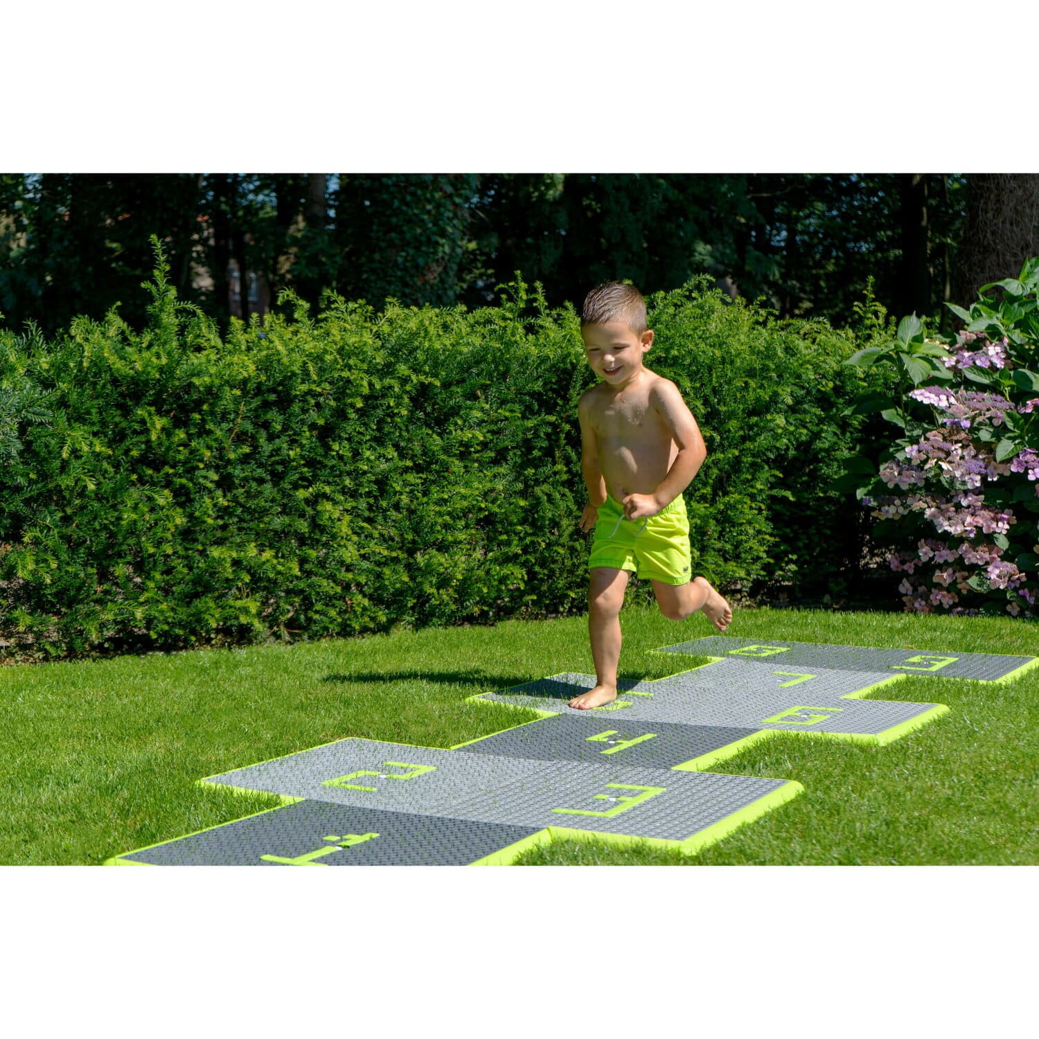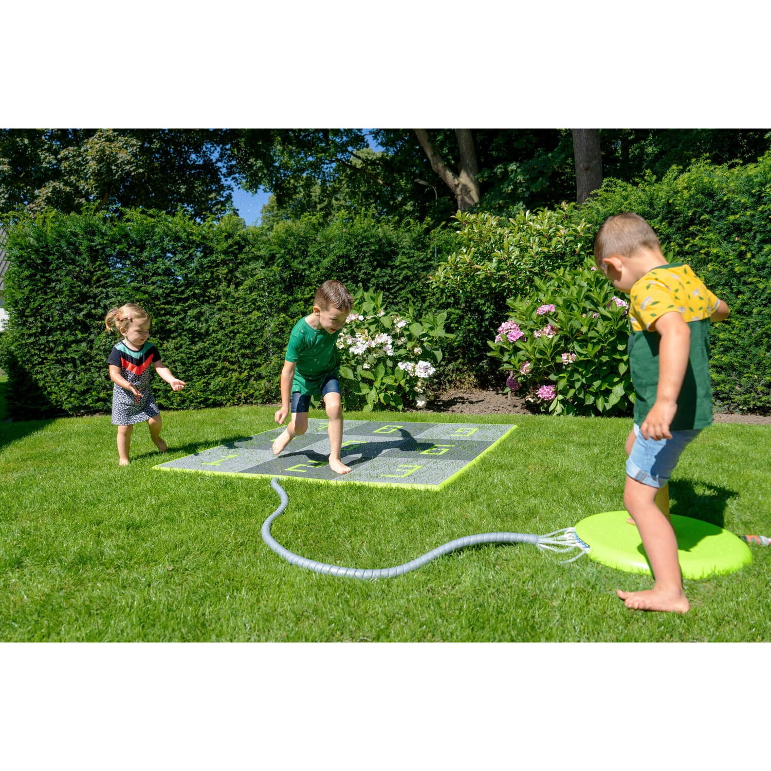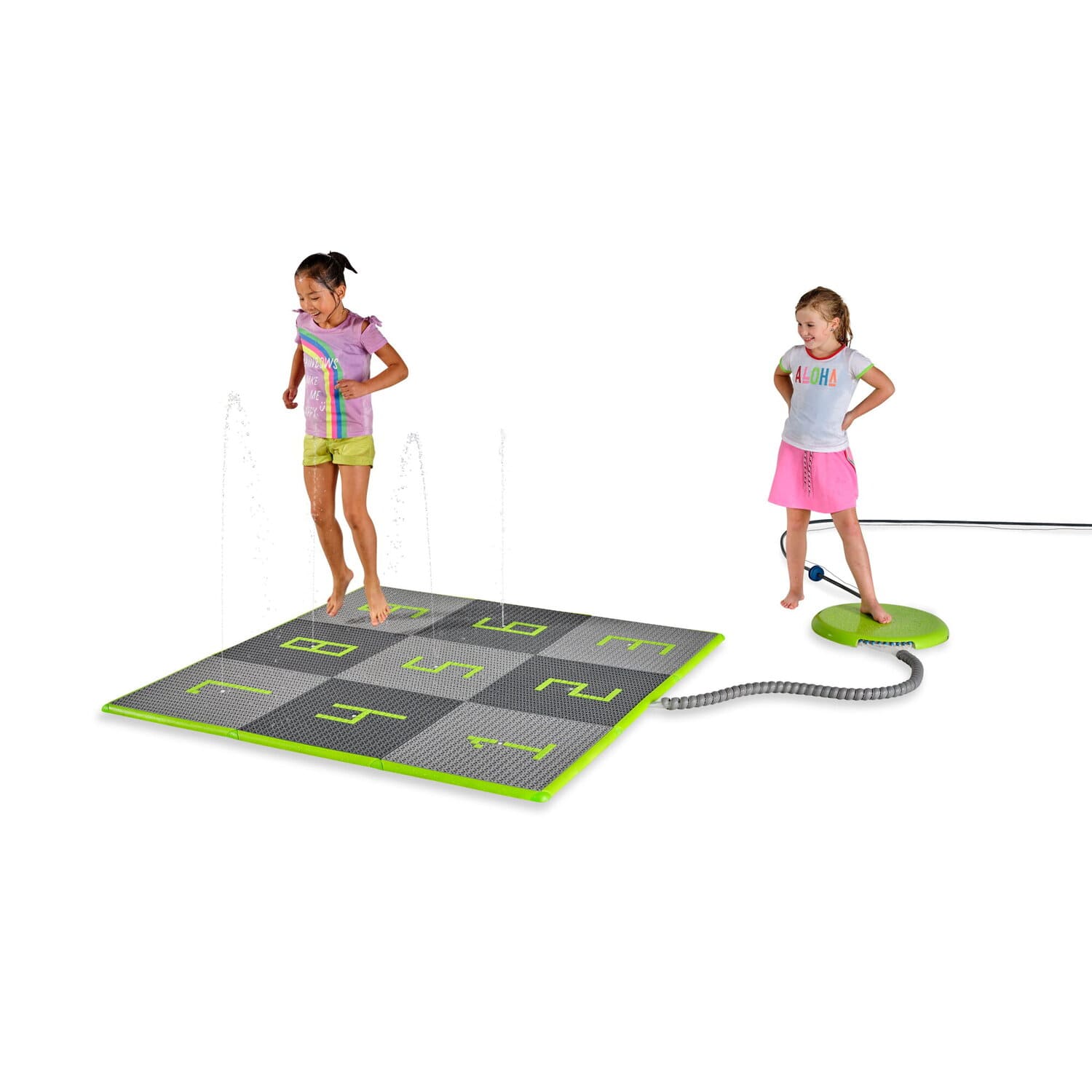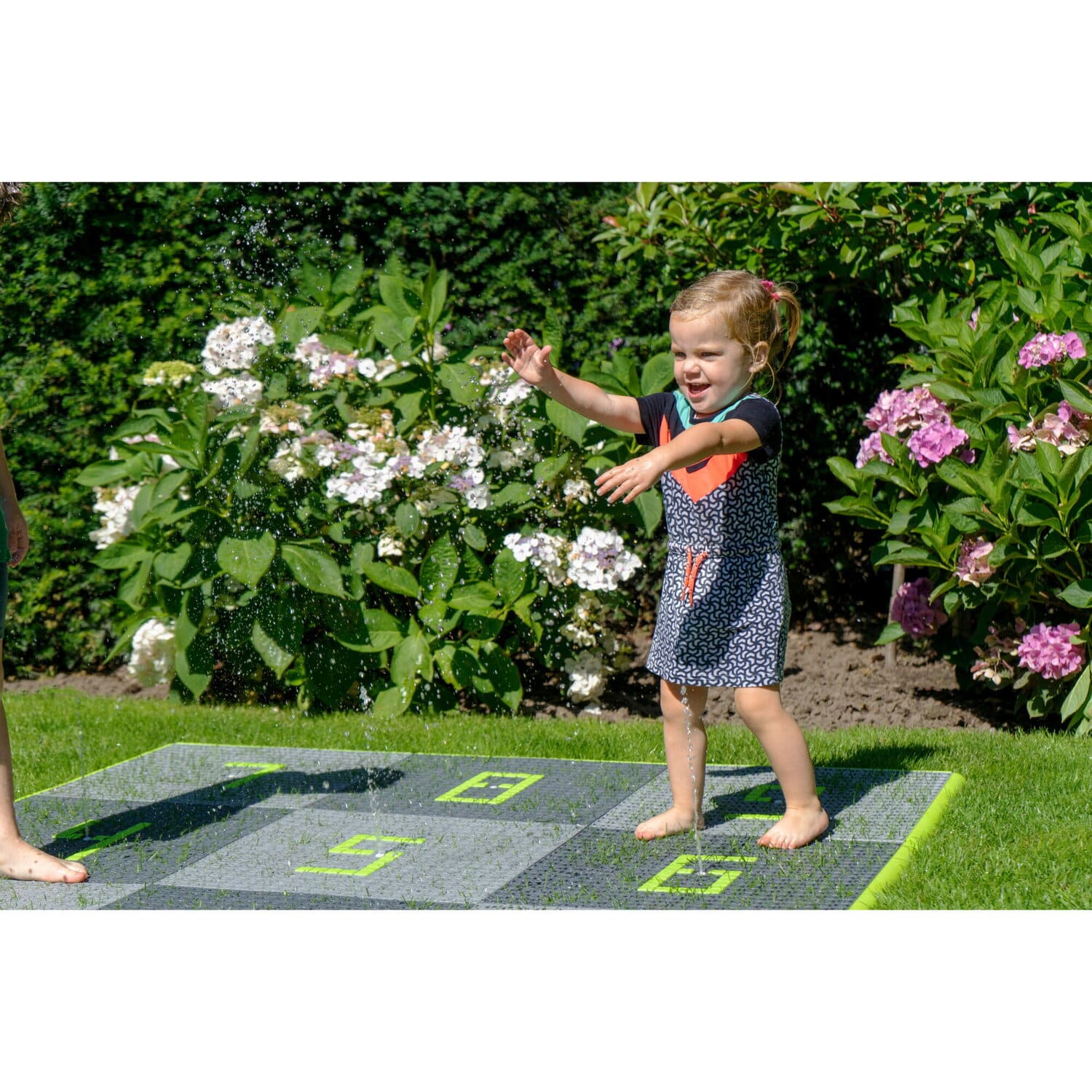 The interactive water playground for the garden is water-educational. Its control block is operated manually or by application. The set has the ability to change the arrangement of tiles from 3 × 3 into a “game of classes” arrangement. The tiles are safe because they have an anti-slip texture. A water playground created for children over 3 years old.