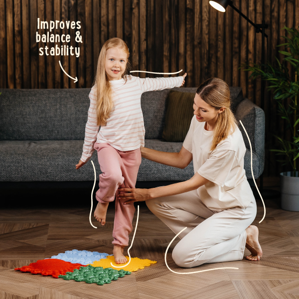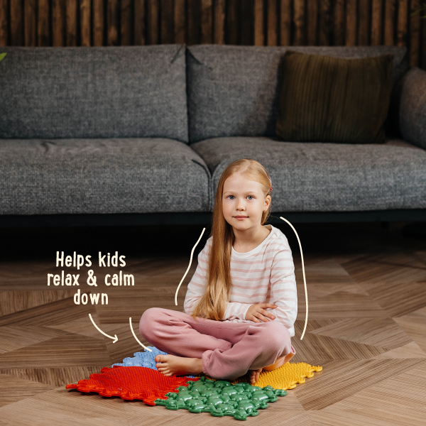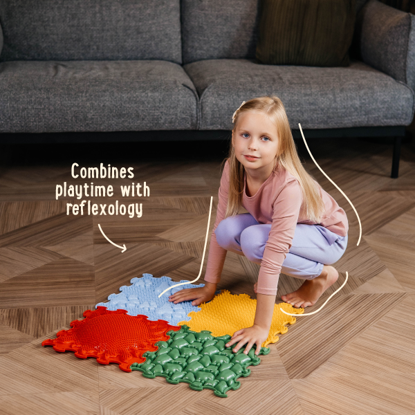 It is durable, supports the child’s sensory development, and can also be used as a mat for massaging the feet after an intense workout – the sensory mat Fantastic Four will work well in the gym for adults as well as in the kindergarten or children’s gym. The set of sensory mats consists of four colorful elements measuring 30×30 cm. Each of them has a different texture, which you will discover by stimulating the nerve endings of the foot. Training on a sensory mat has a beneficial effect on the correction of flat feet, stimulates blood circulation and promotes the development of the vestibular system.