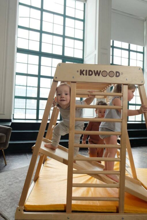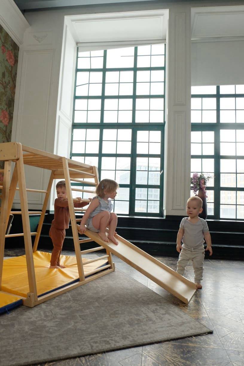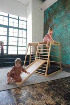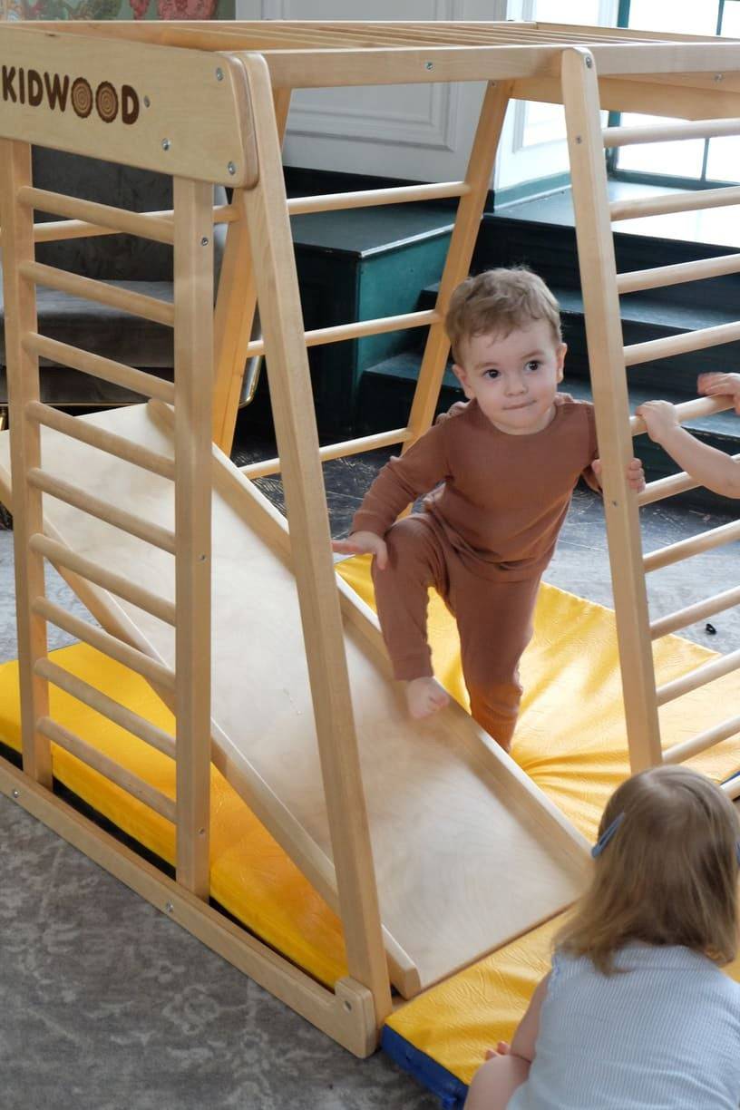 🌿 Indoor Wooden Toddler Slide — natural play for little hands and growing hearts. From Monkey-gym — because childhood should feel warm, safe, and full of movement