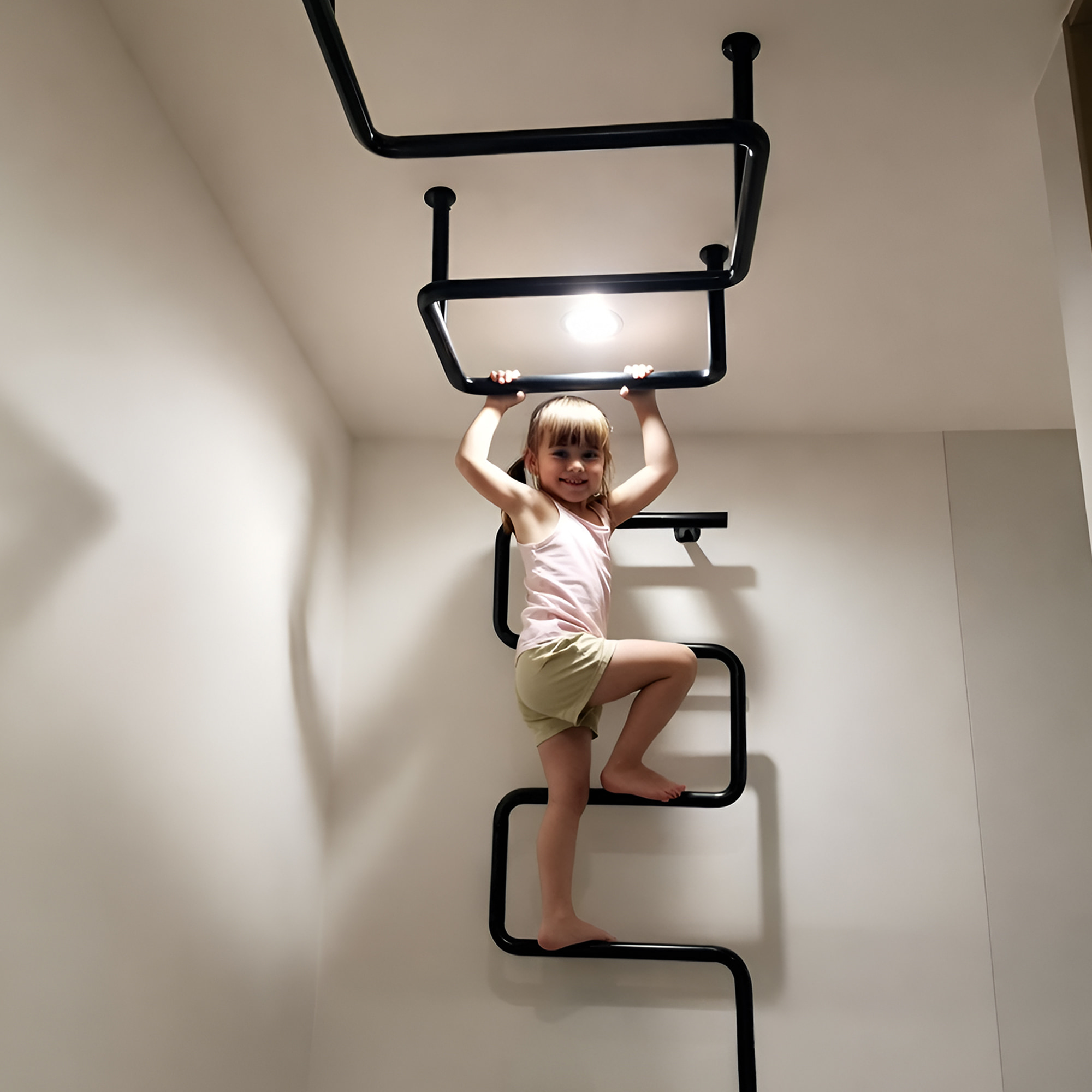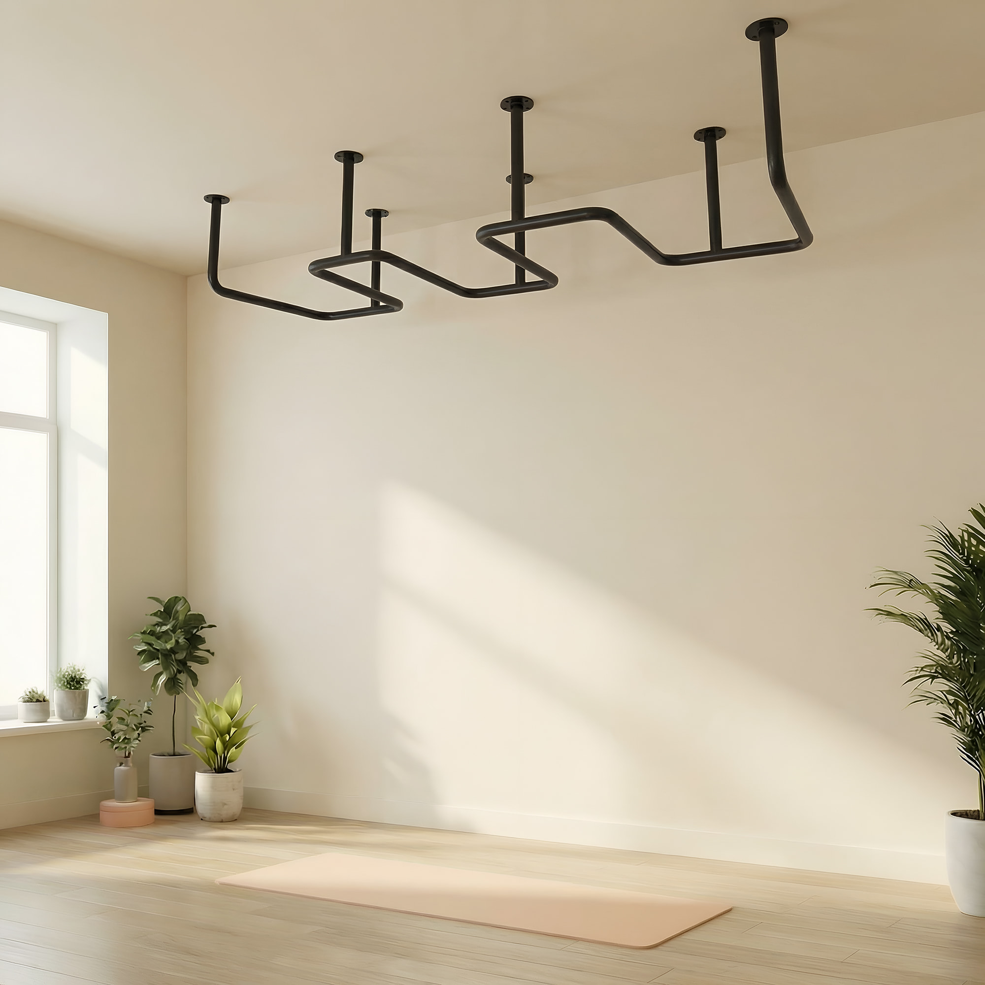 That’s why we present the Zigzag Slim Ceiling Monkey Bars: a space-saving, beautifully designed piece of equipment that brings fun, strength, and motion right into your home.