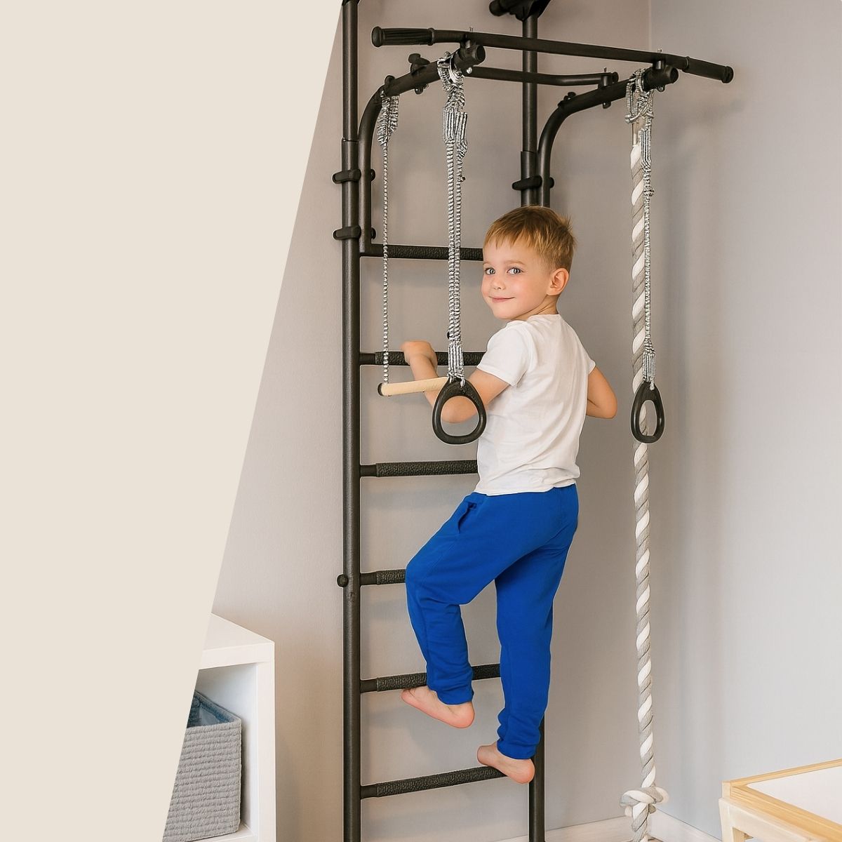 The Comet 5 is more than an exercise wall bar; it’s a daily reminder that every step, climb, or stretch brings you closer to strength, balance, and joy. Bring movement home — and let every member of your family shine in their own way.