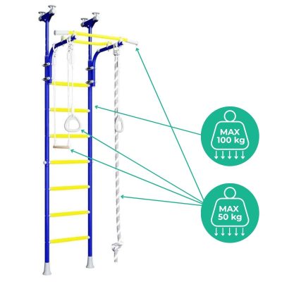 - Мax. load: 100 kg (wall bars and pull-up bar), 50 kg (accessories)