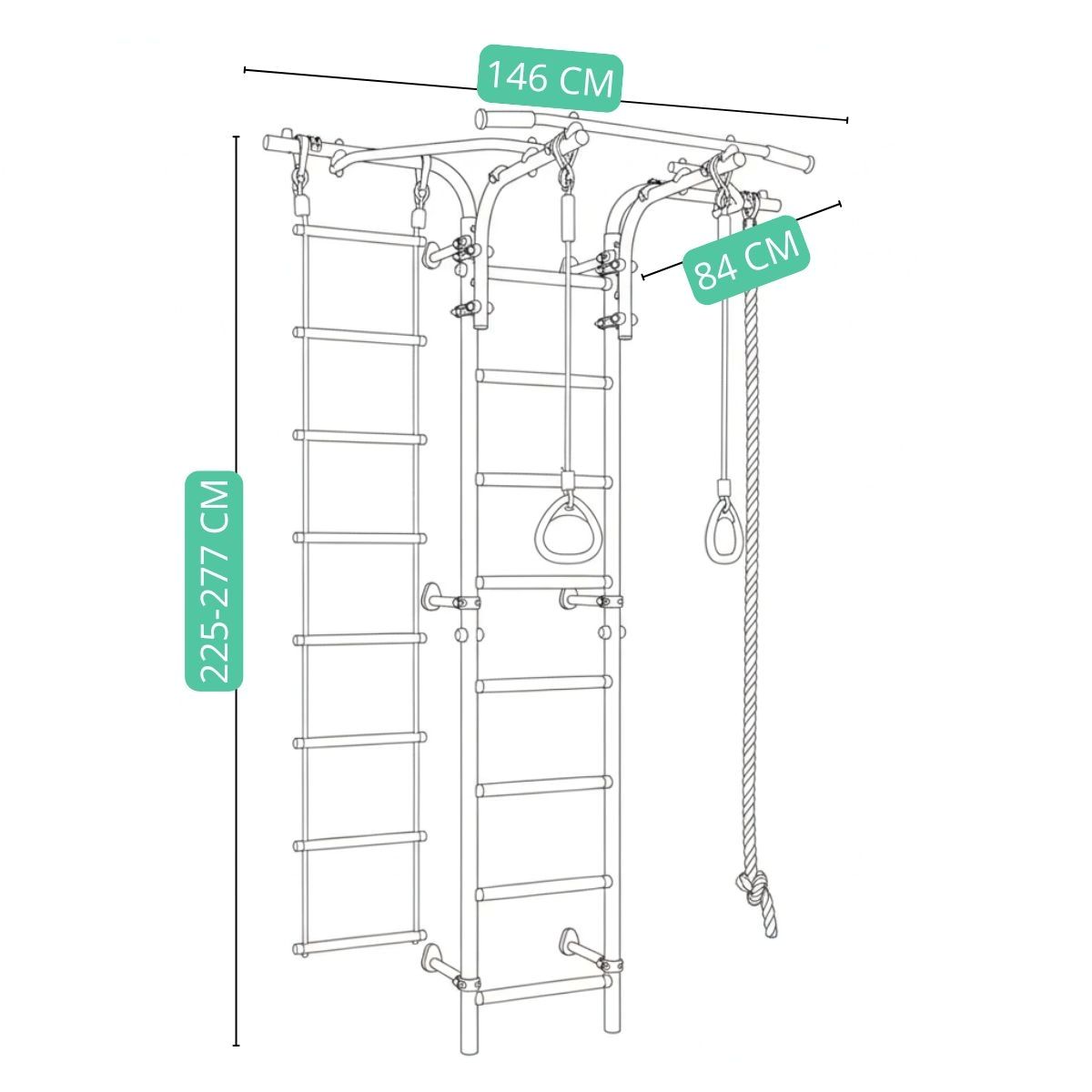 - Мax. load: 100 kg (wall bars and pull-up bar), 50 kg (accessories)