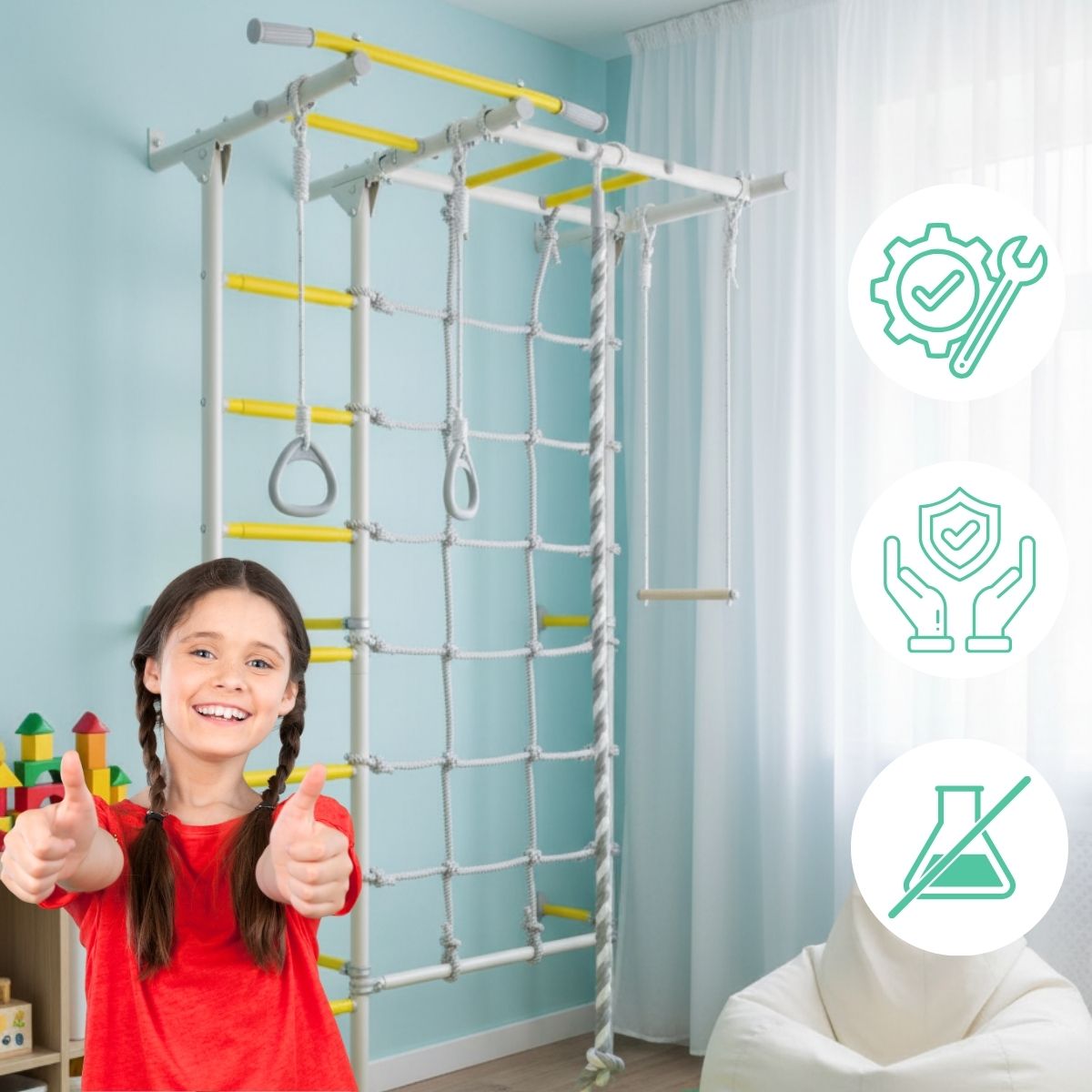 - Wall bars designed for children from 3 years and adults
