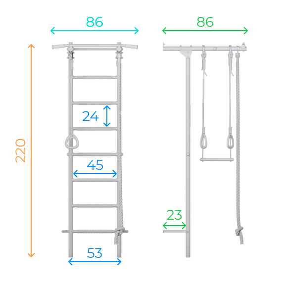 - Wall bars designed for children from 3 years and adults