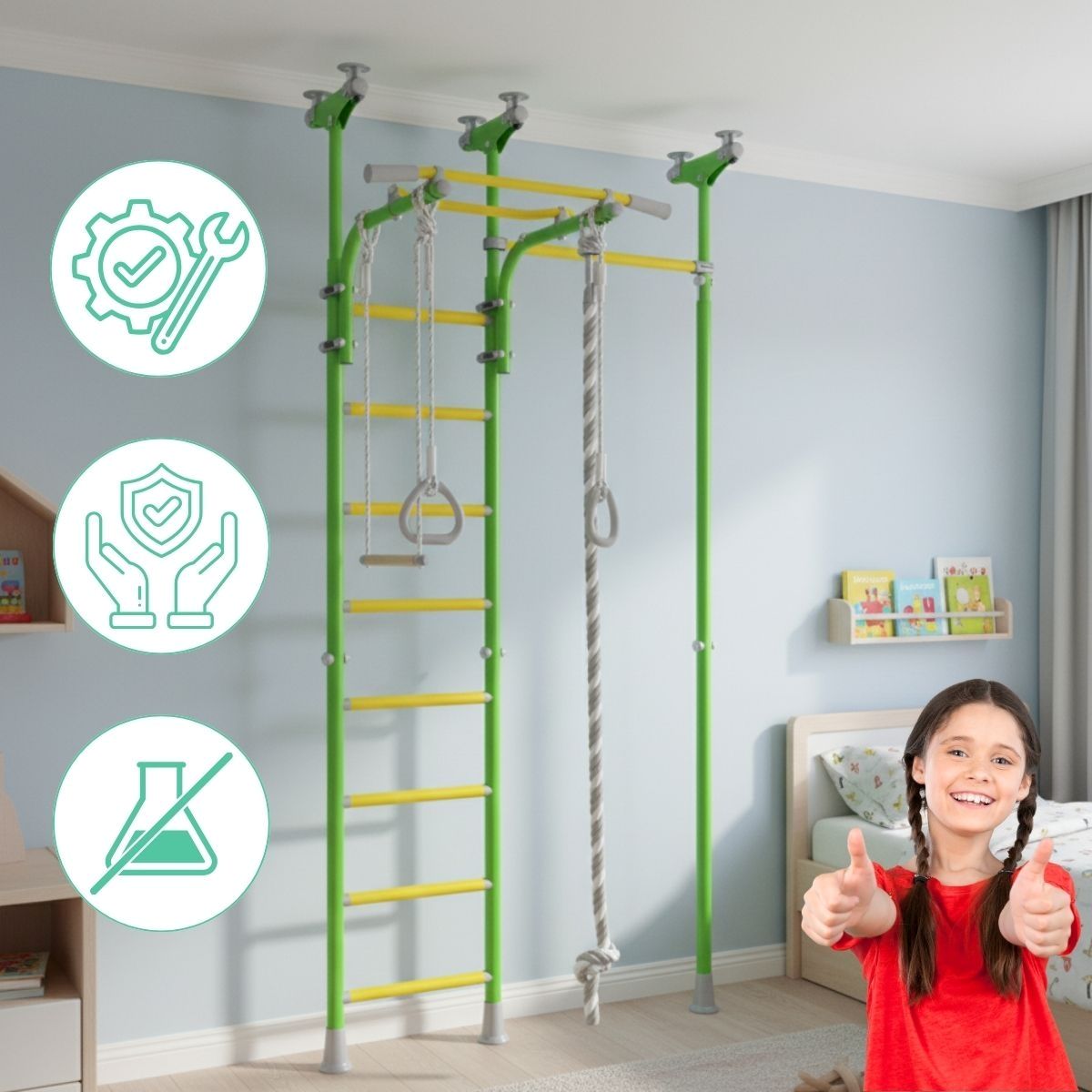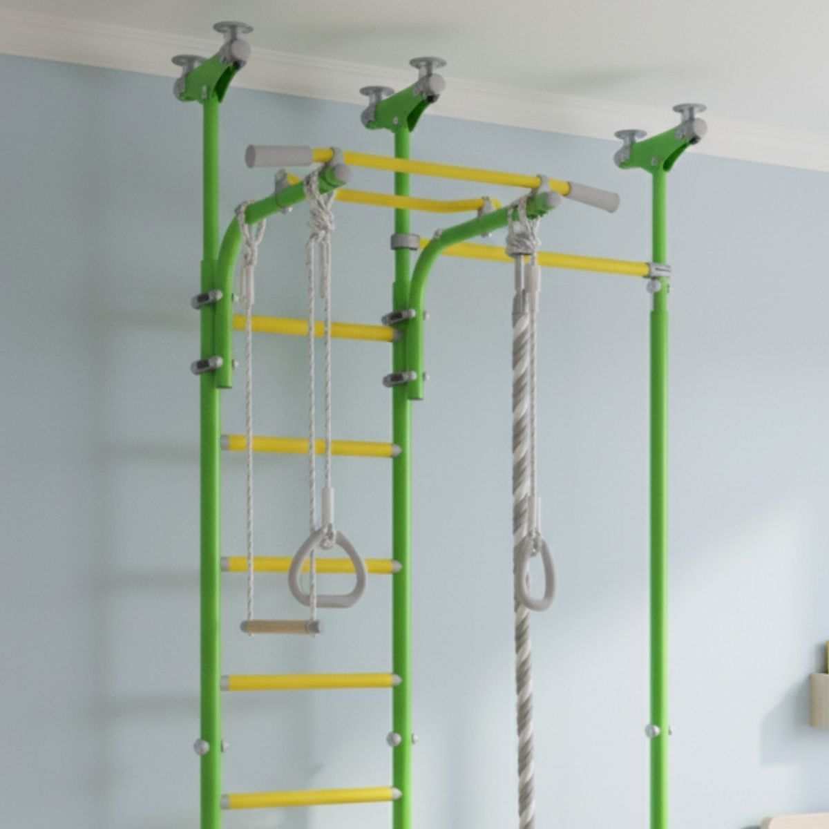 - Max. load: 100 kg (wall bars and pull-up bars), 50 kg (accessories)