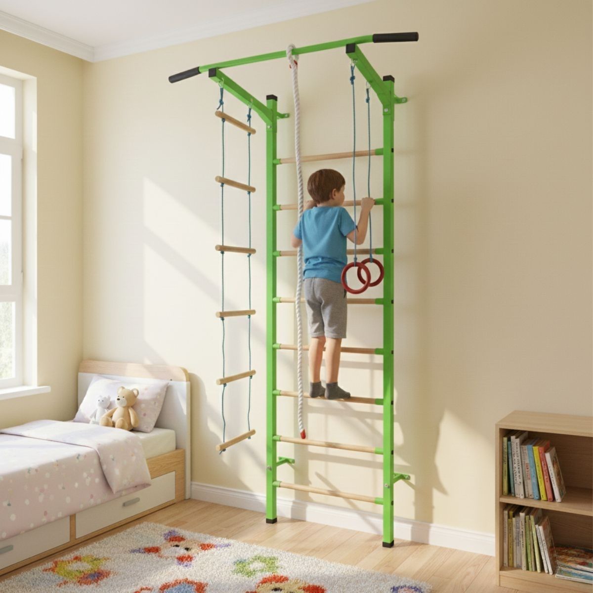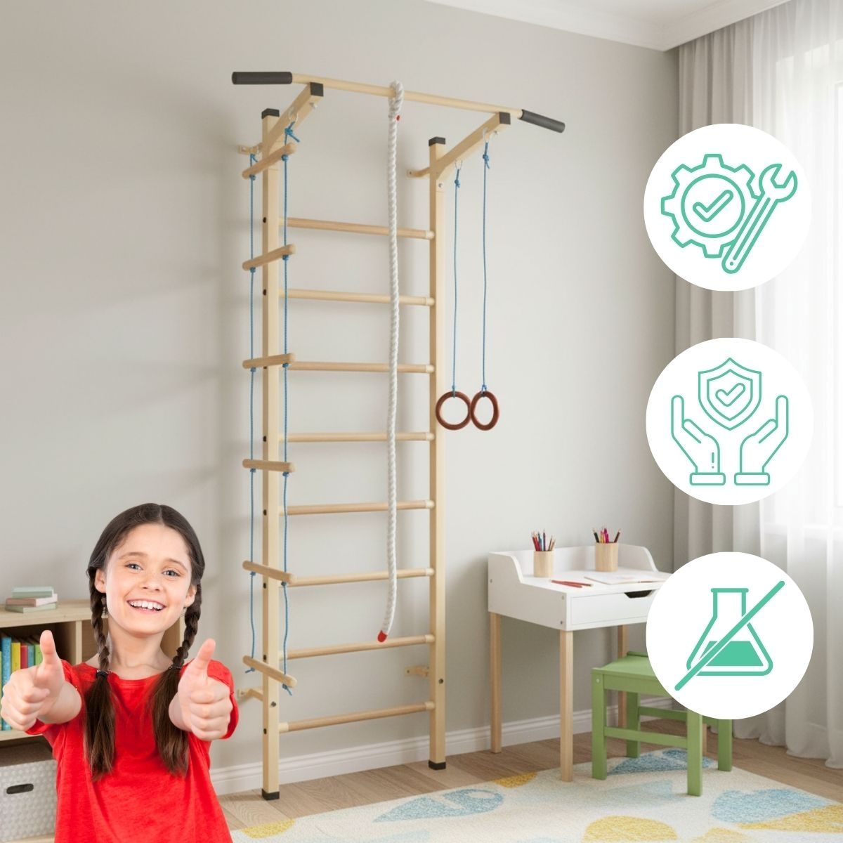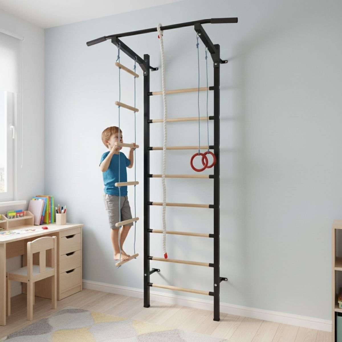 Equipped with a removable pull-up bar and several classic gymnastic accessories, the Sport Child Plus provides endless exercise possibilities — from pull-ups and stretches to climbing and swinging. Compact and easy to install, it fits perfectly in any home environment.