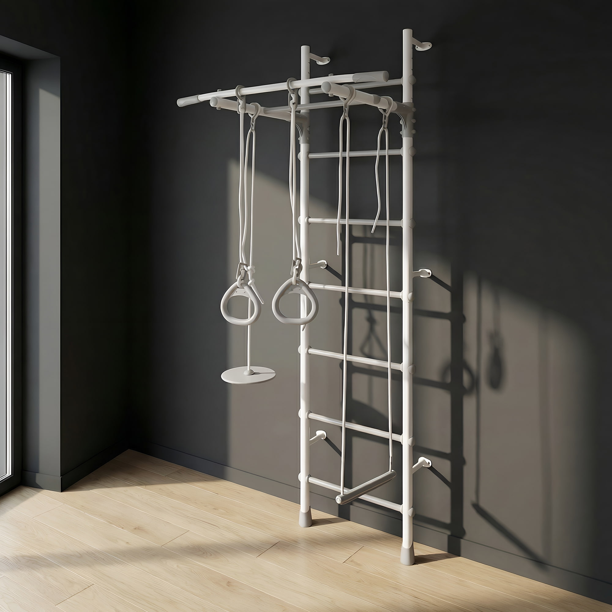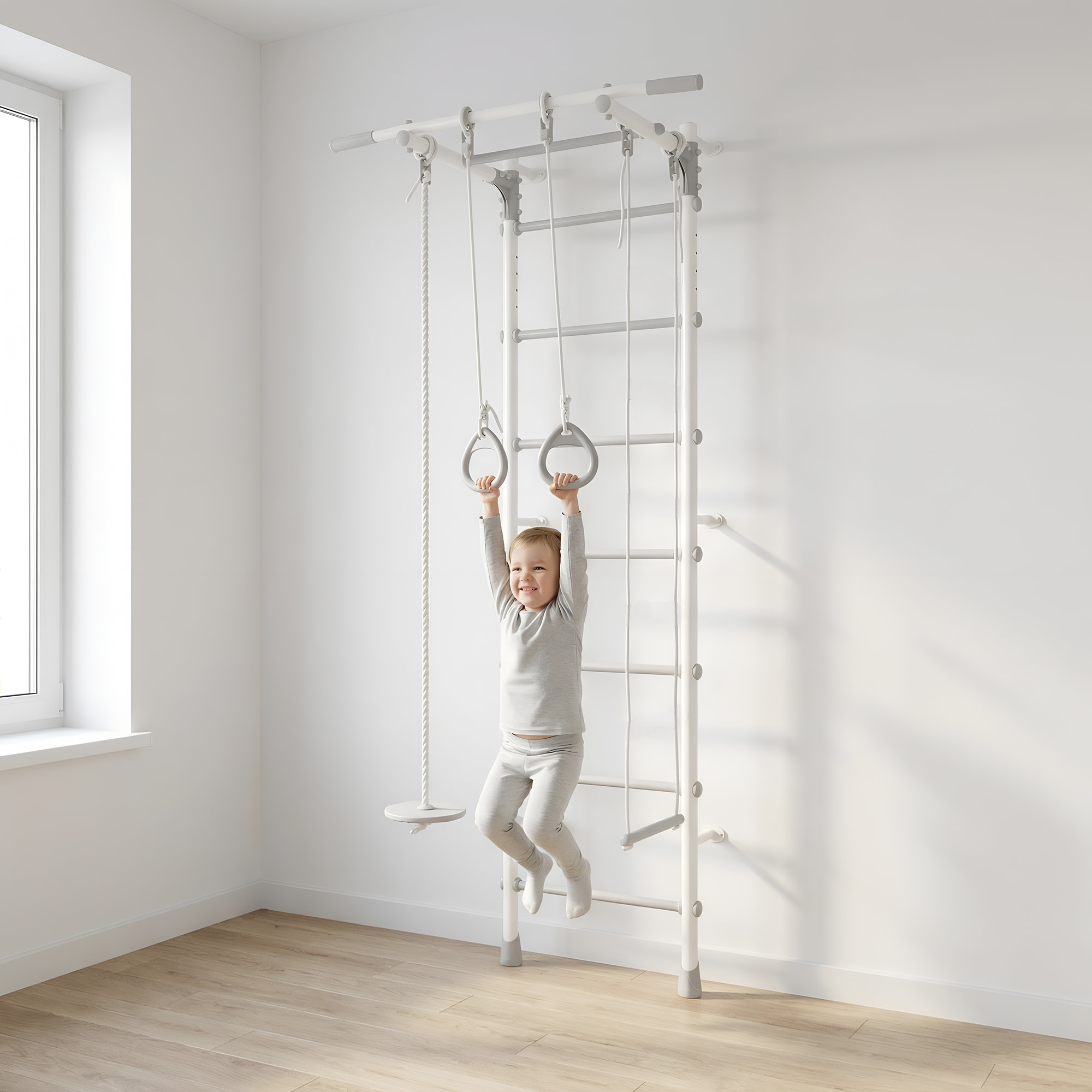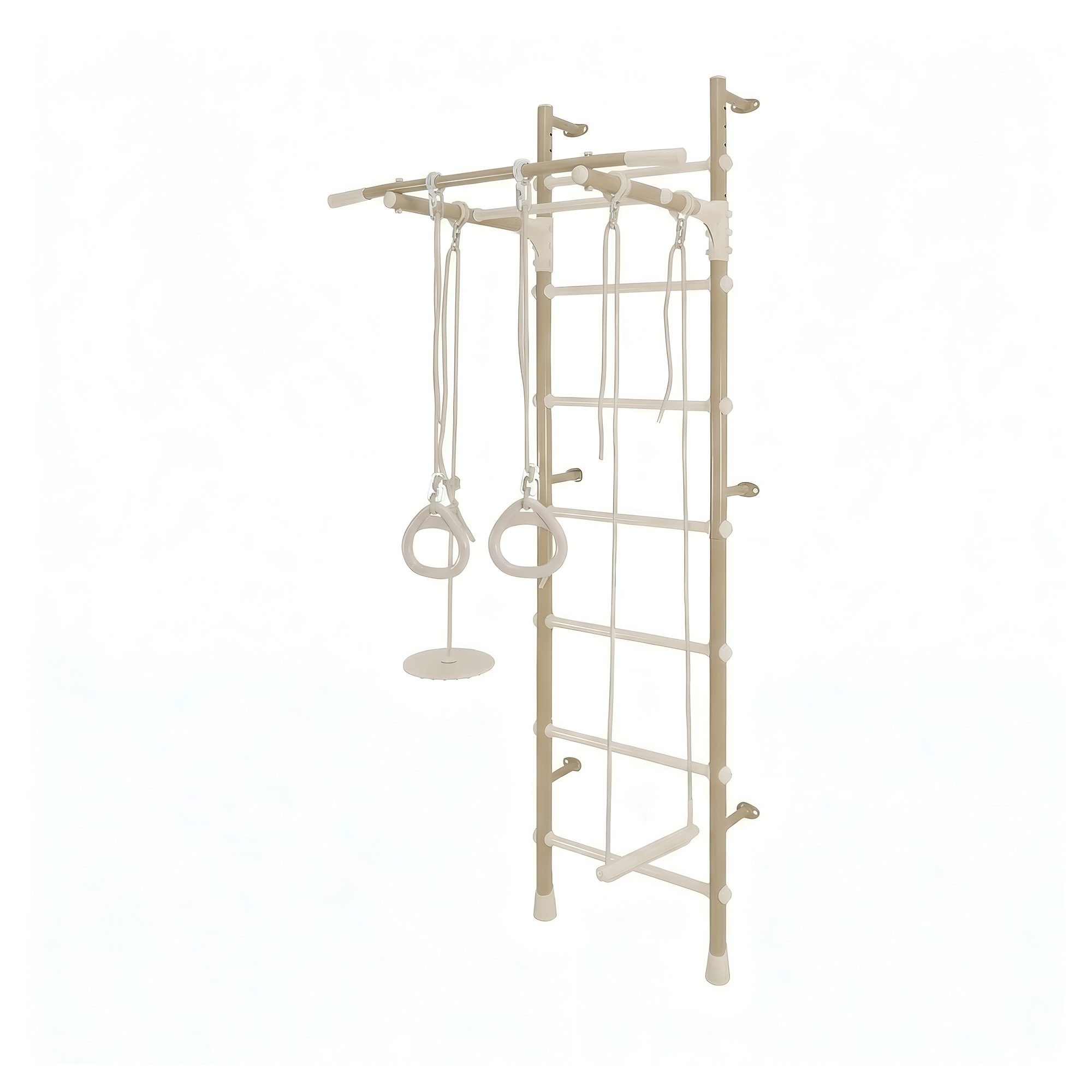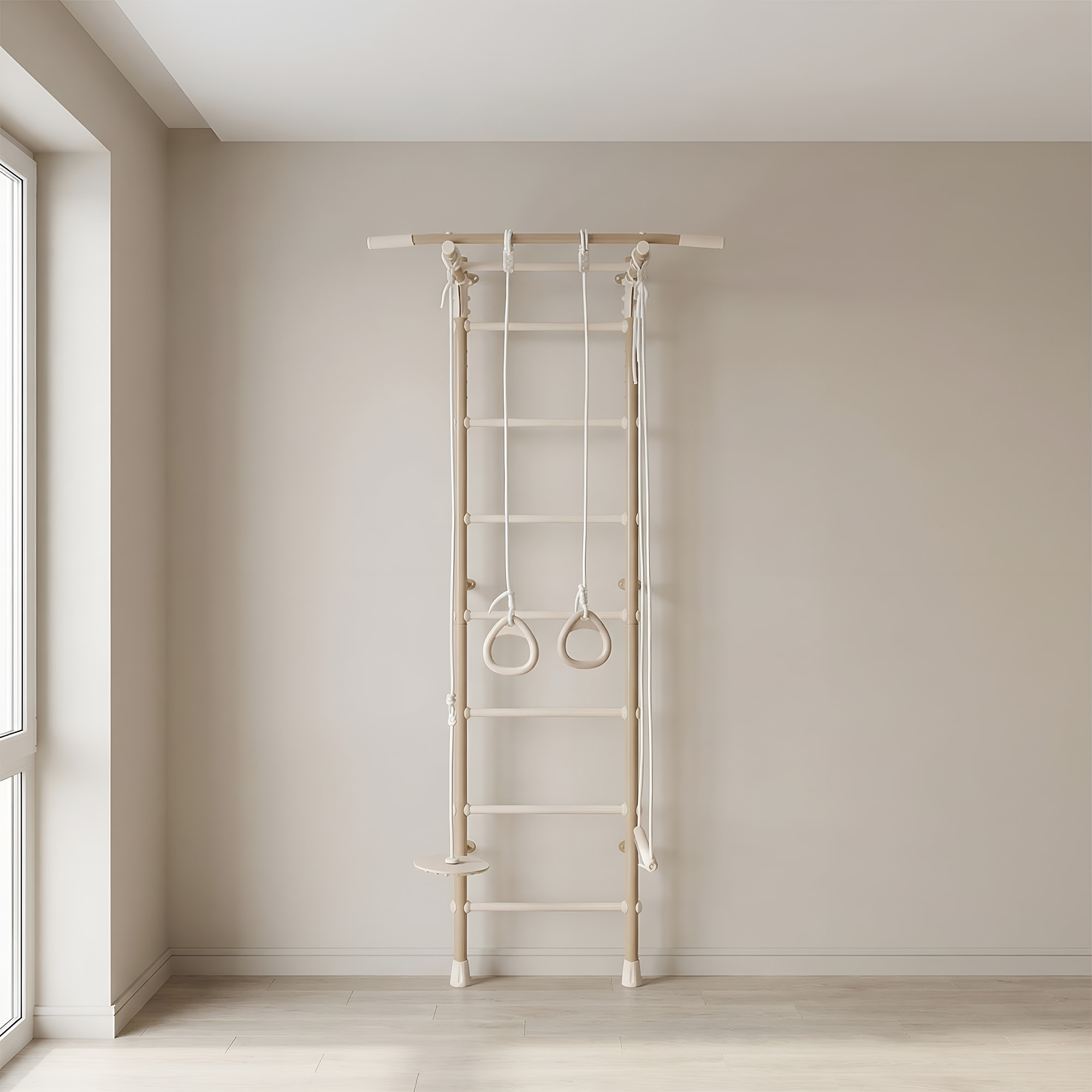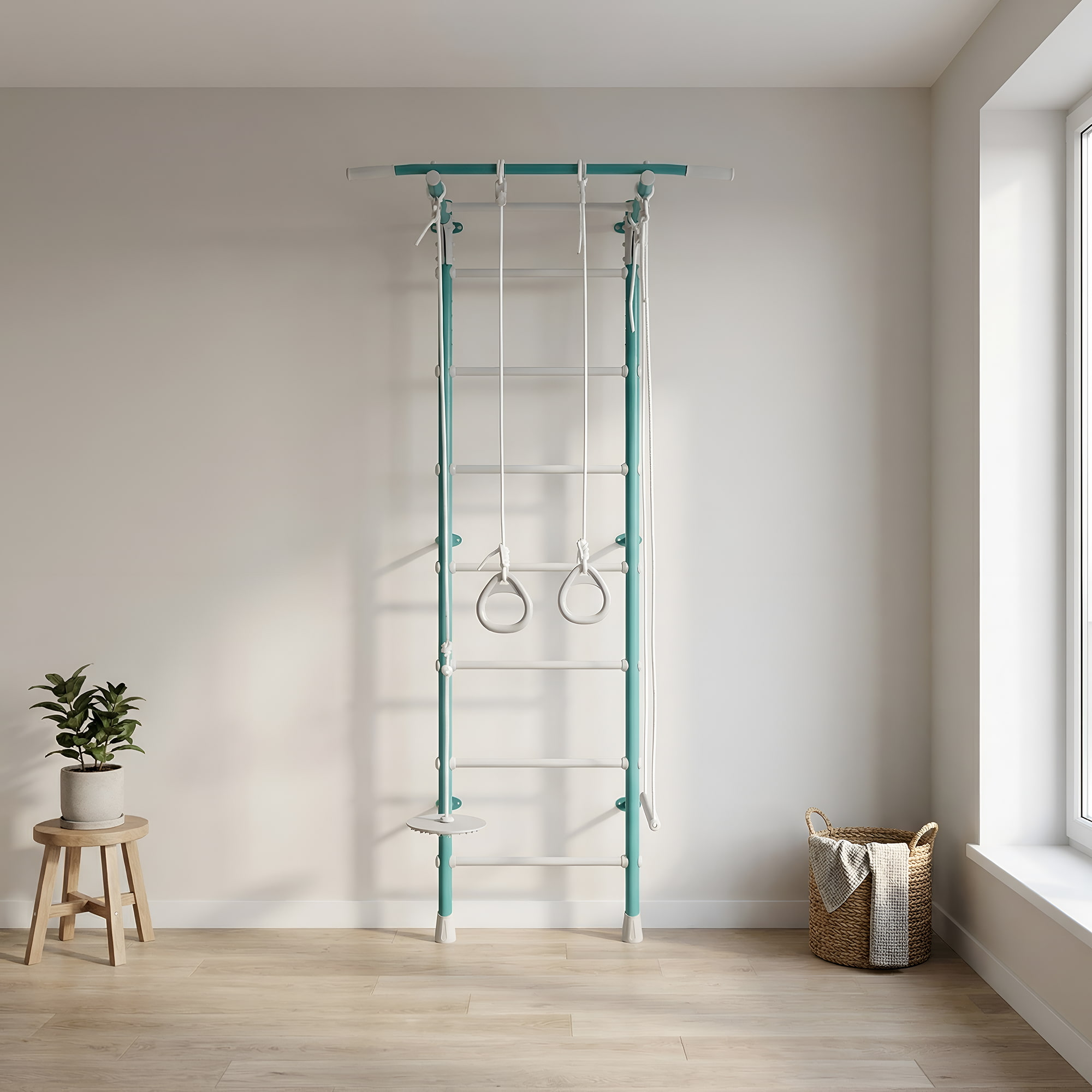 The Vanilia wall bars set is a versatile and safe home gym solution for children and adults. Designed to provide a fun and engaging way to exercise, it supports a wide range of strength, balance, and coordination activities. Its durable metal construction ensures stability and long-lasting use.