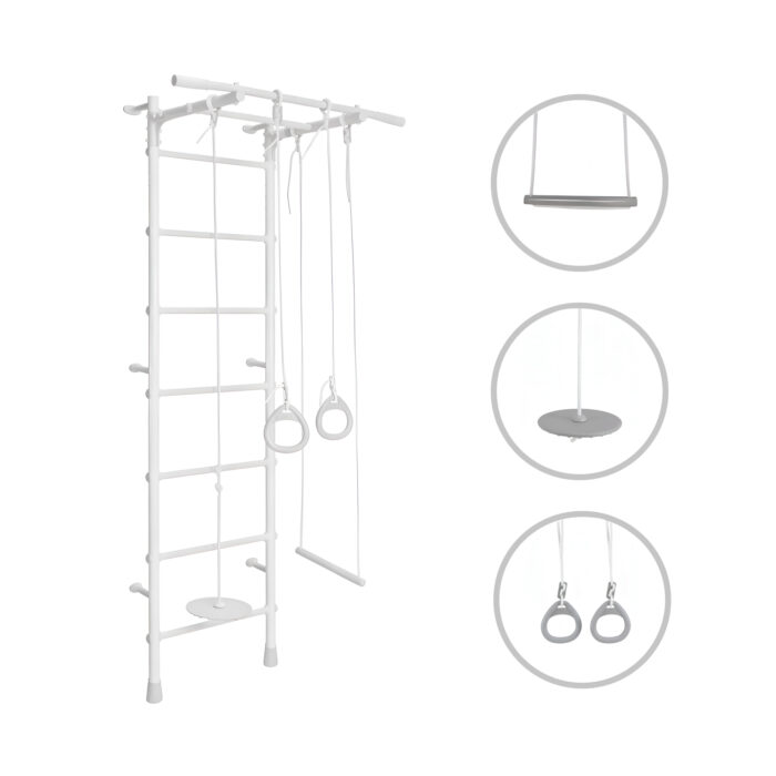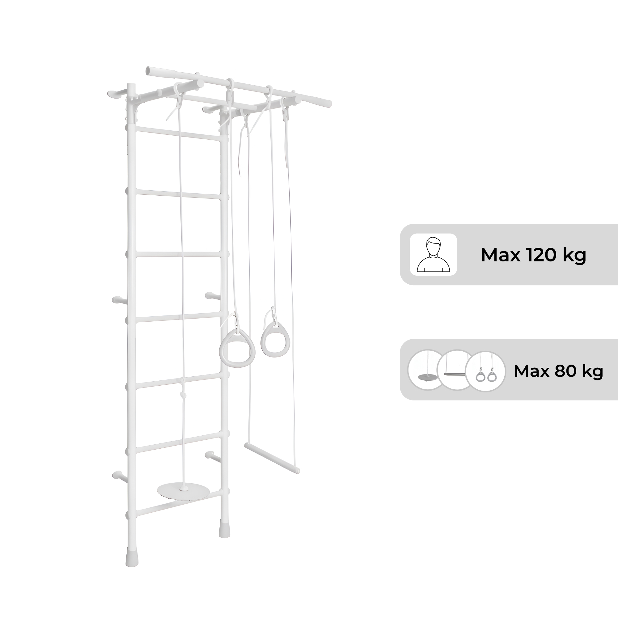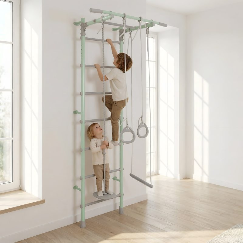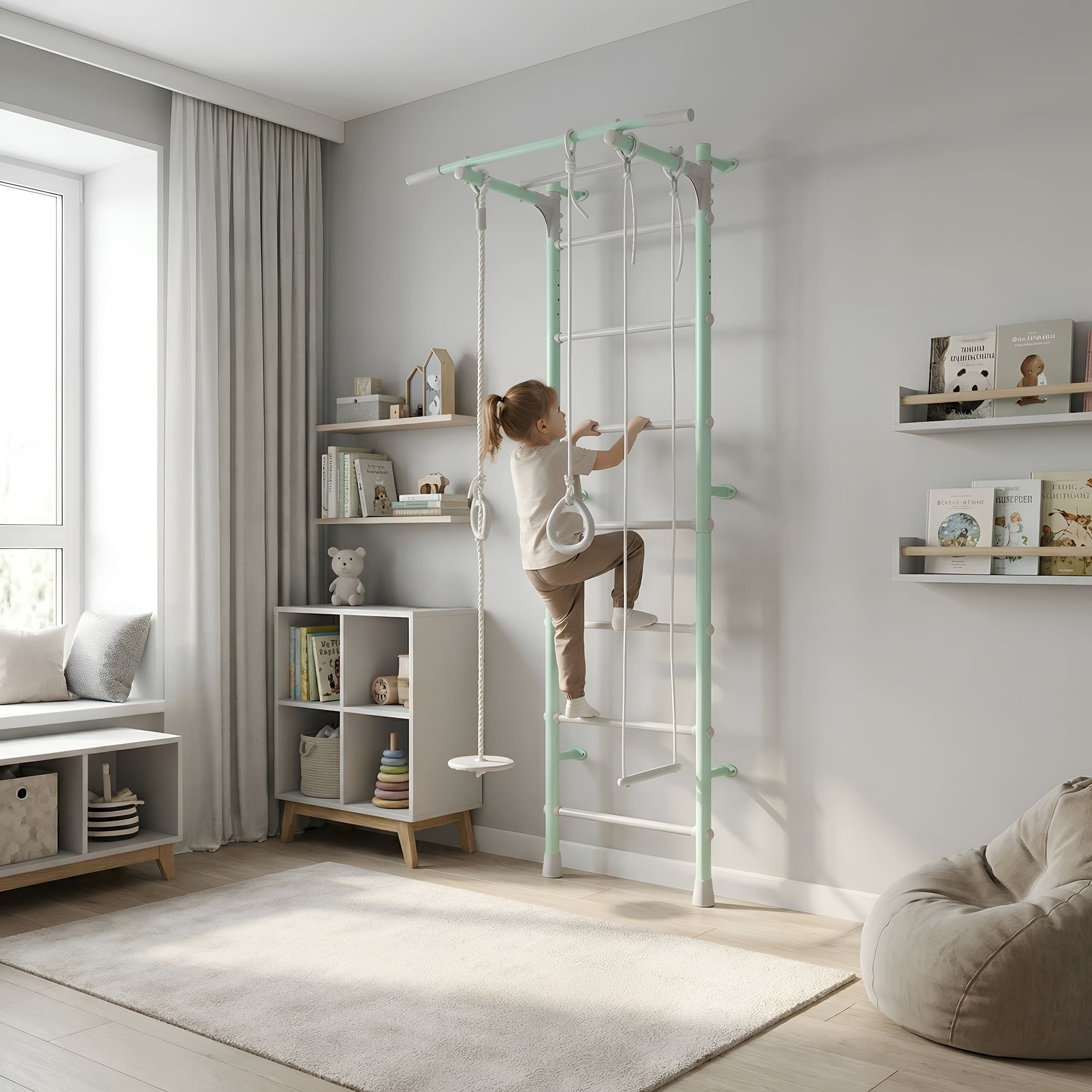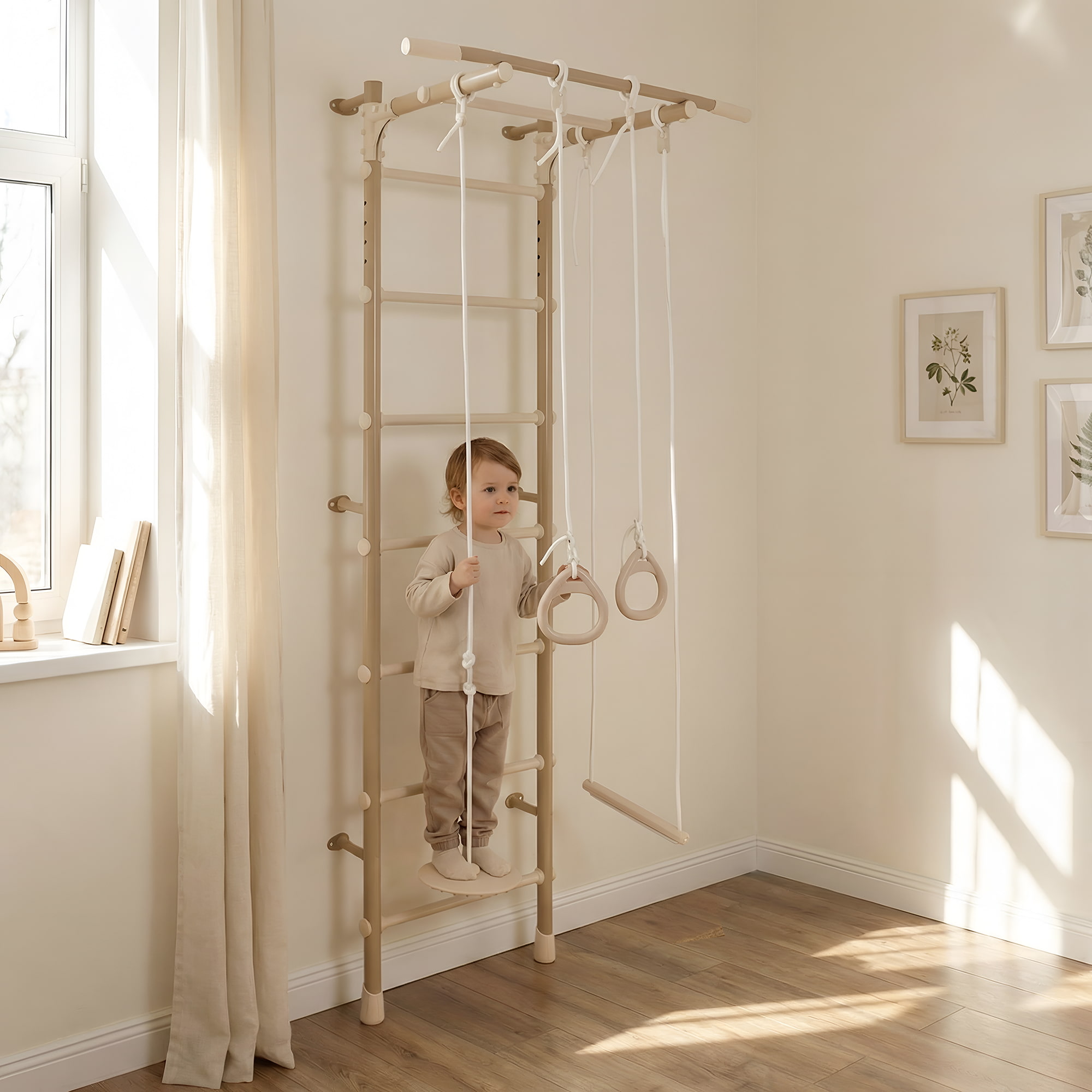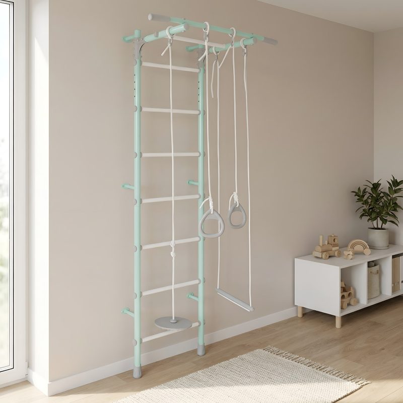 The Vanilia wall bars set is a versatile and safe home gym solution for children and adults. Designed to provide a fun and engaging way to exercise, it supports a wide range of strength, balance, and coordination activities. Its durable metal construction ensures stability and long-lasting use.