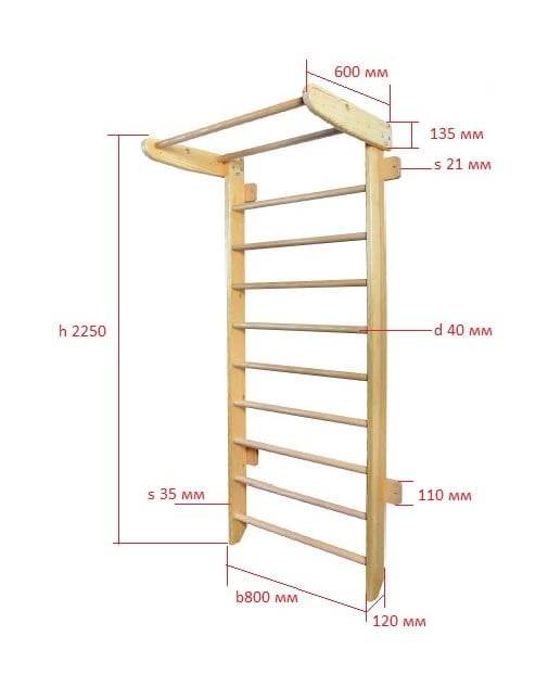 Maximum load: 120 kg (ladder and pull-up bar), 60 kg (accessories)