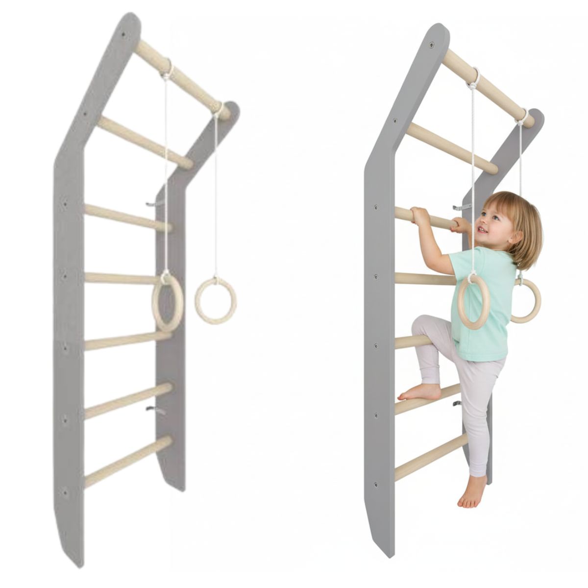 The Toddler wooden wall bars are a classic gymnastic ladder specially designed for the youngest children. Made of smooth, natural wood, this compact set is safe, durable, and perfectly suited for early physical development and play.