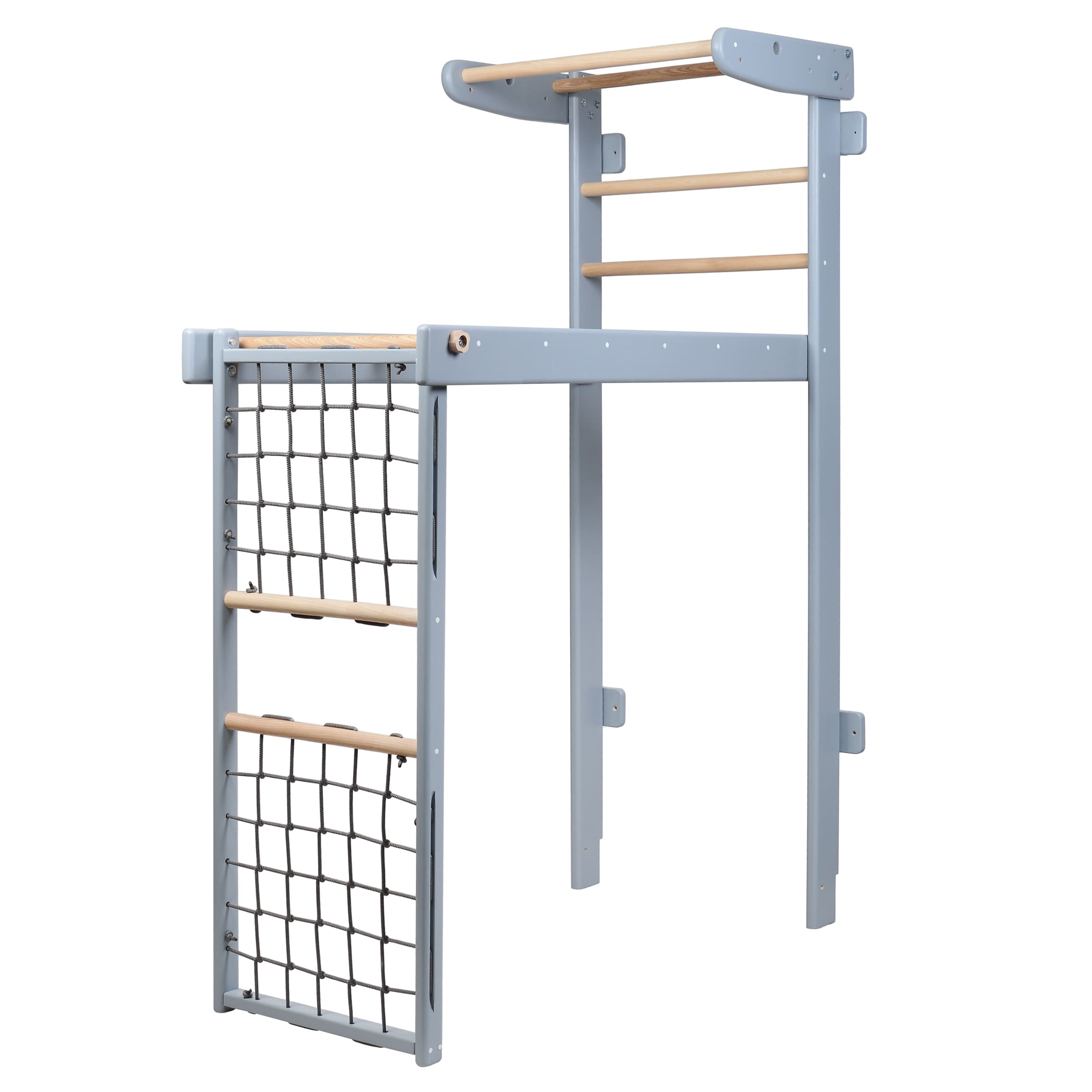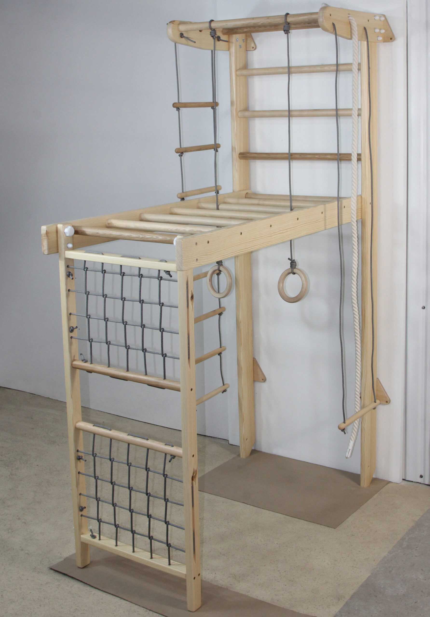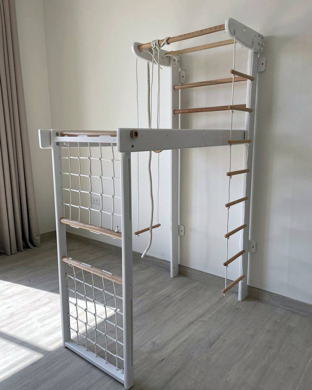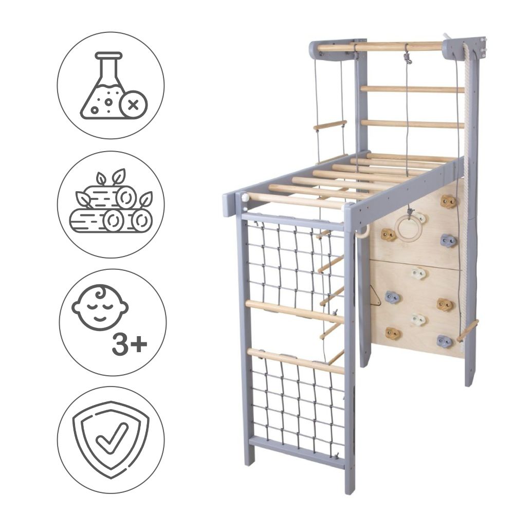 The Winner wooden climbing frame is a multi-functional gymnastic set designed for children and adults to enjoy safe and active workouts at home. Made from high-quality wood, this set combines natural aesthetics with durability, making it a perfect fit for both playrooms and modern interiors.