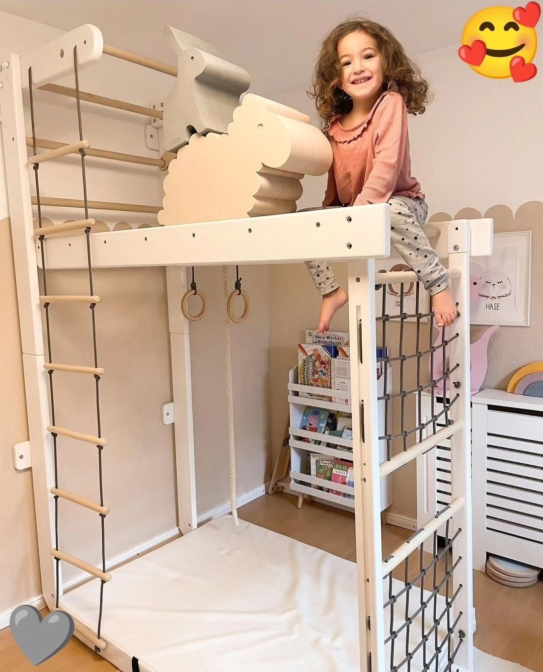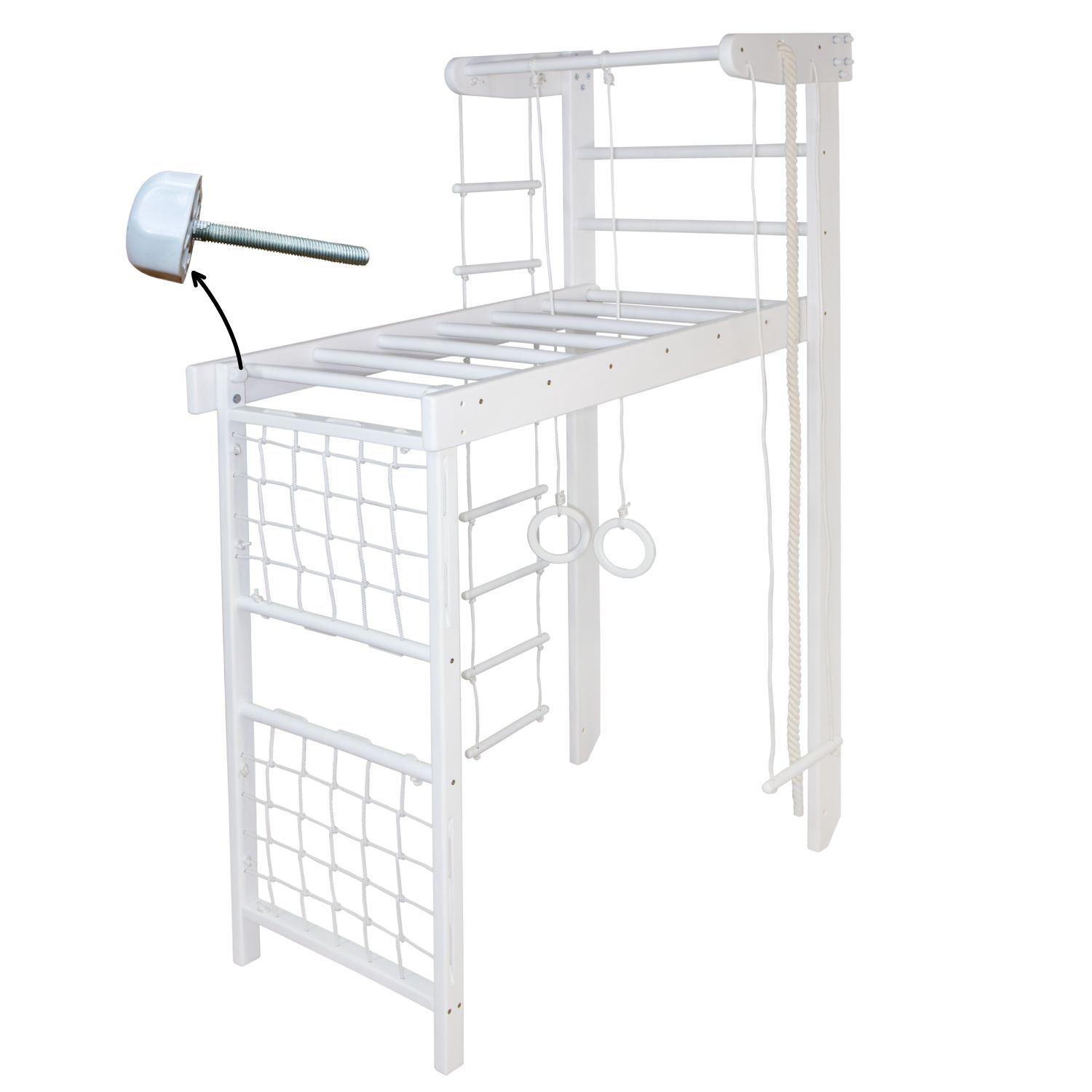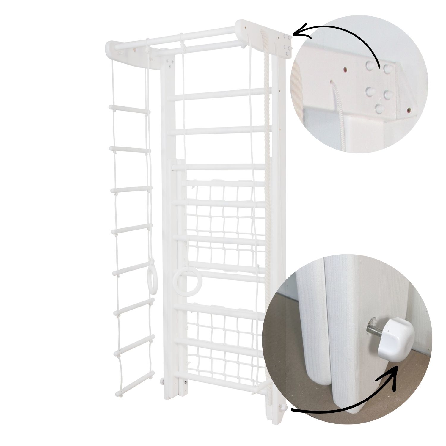 The Winner wooden climbing frame is a multi-functional gymnastic set designed for children and adults to enjoy safe and active workouts at home. Made from high-quality wood, this set combines natural aesthetics with durability, making it a perfect fit for both playrooms and modern interiors.