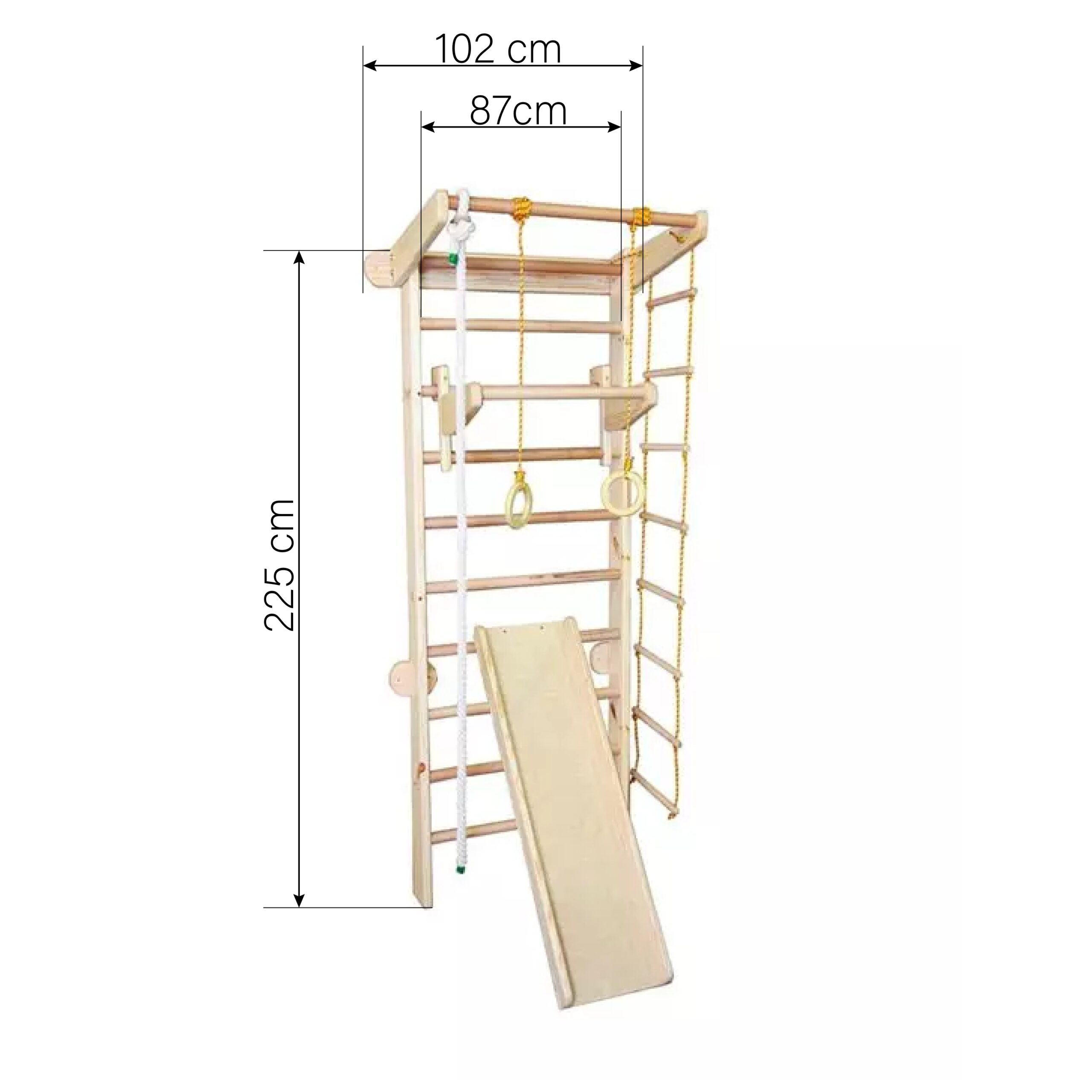 - Max. load: 100 kg (wall bars), 50 kg (slide), 60 kg (accesories)